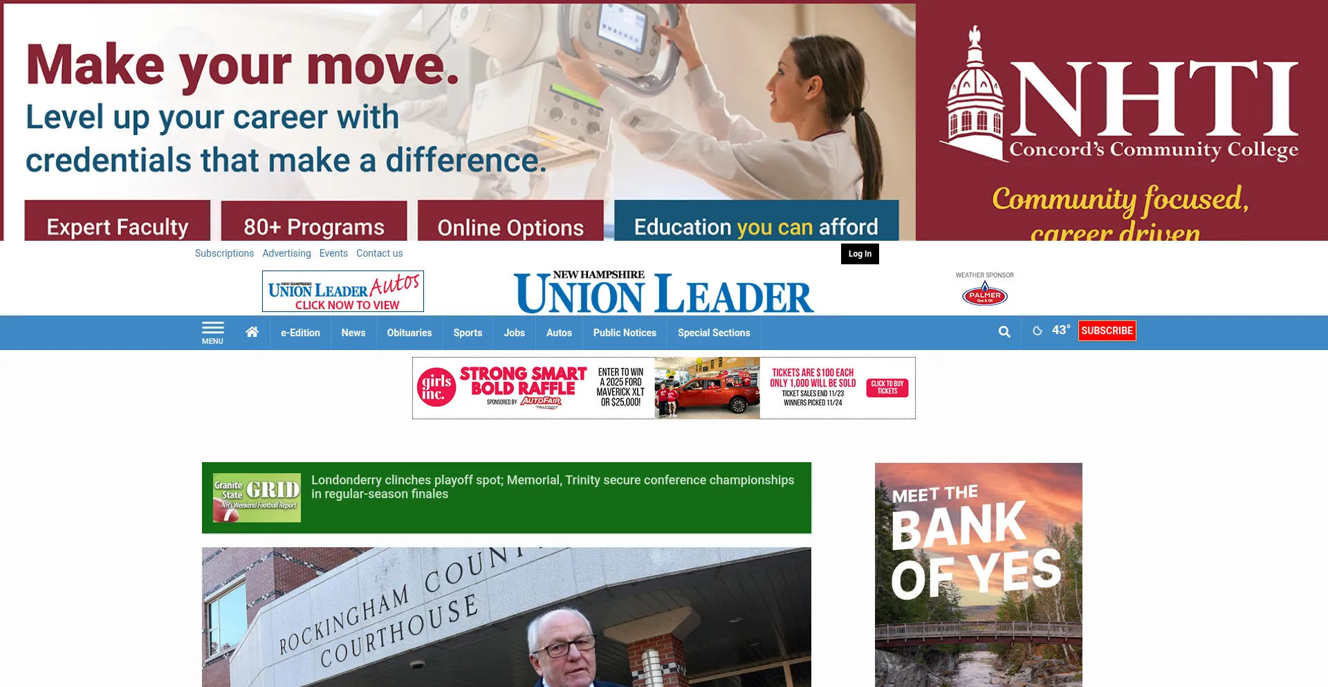 该网站实现数据收集表单,请求个人信息,包括姓名、电子邮件地址、电话号码或其他敏感详细信息。用户应验证 unionleader.com 的合法性并在提交个人数据前查看隐私政策。
