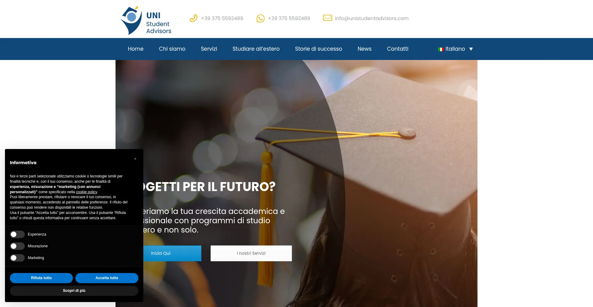 该网站实现符合GDPR或CCPA等隐私法规的cookie同意机制。这表明 unistudentadvisors.com 遵守数据保护标准并为用户提供对个人数据收集实践的控制。