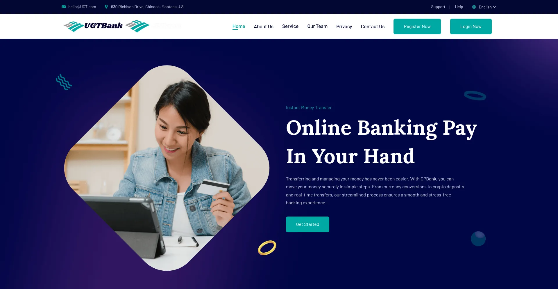该网站实现数据收集表单,请求个人信息,包括姓名、电子邮件地址、电话号码或其他敏感详细信息。用户应验证 unitedglobaltrustbank.com 的合法性并在提交个人数据前查看隐私政策。