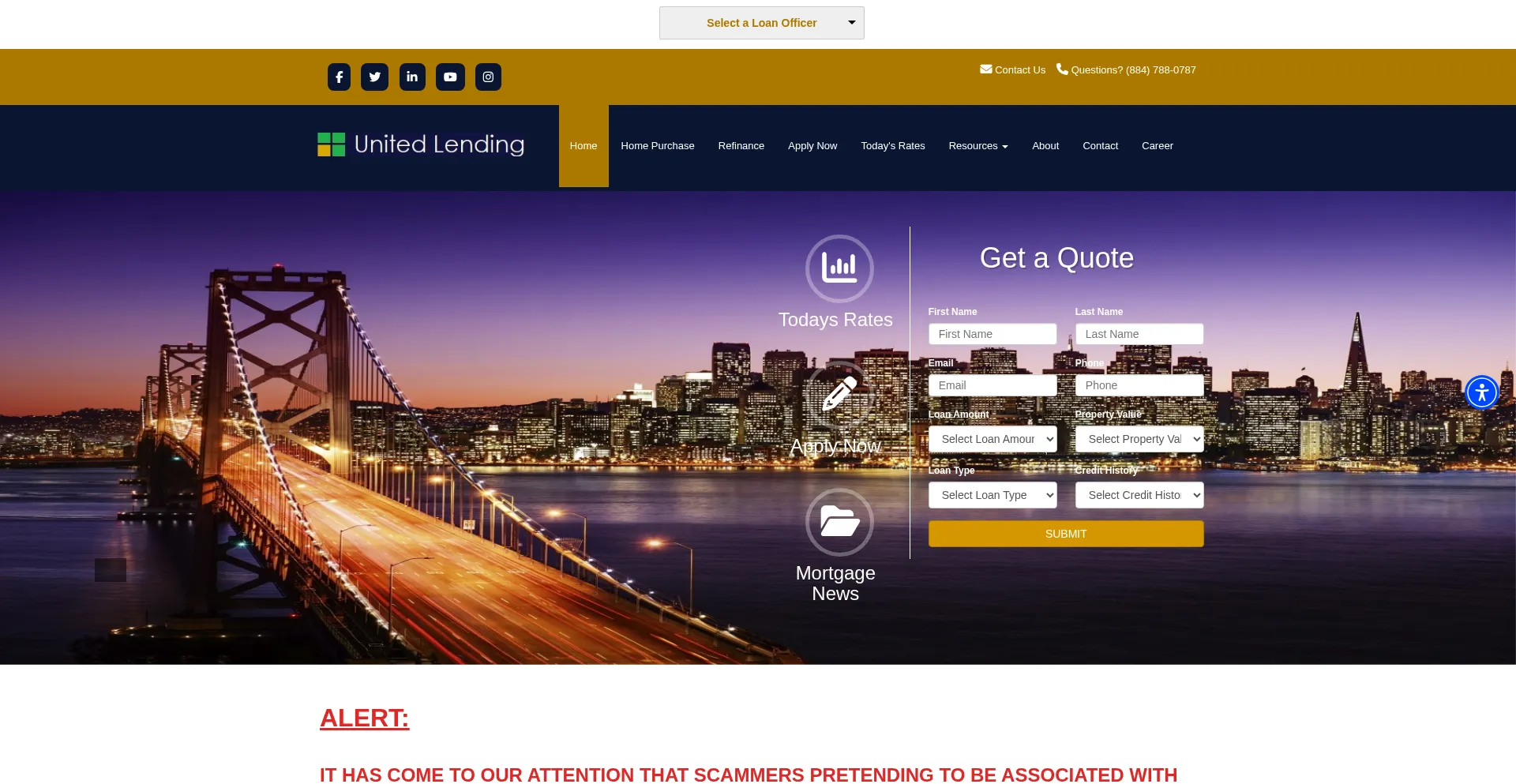 网站上存在社交媒体链接表明 unitedlending.com 在社交媒体上维护官方账户,这是可信度和参与度的积极信号。