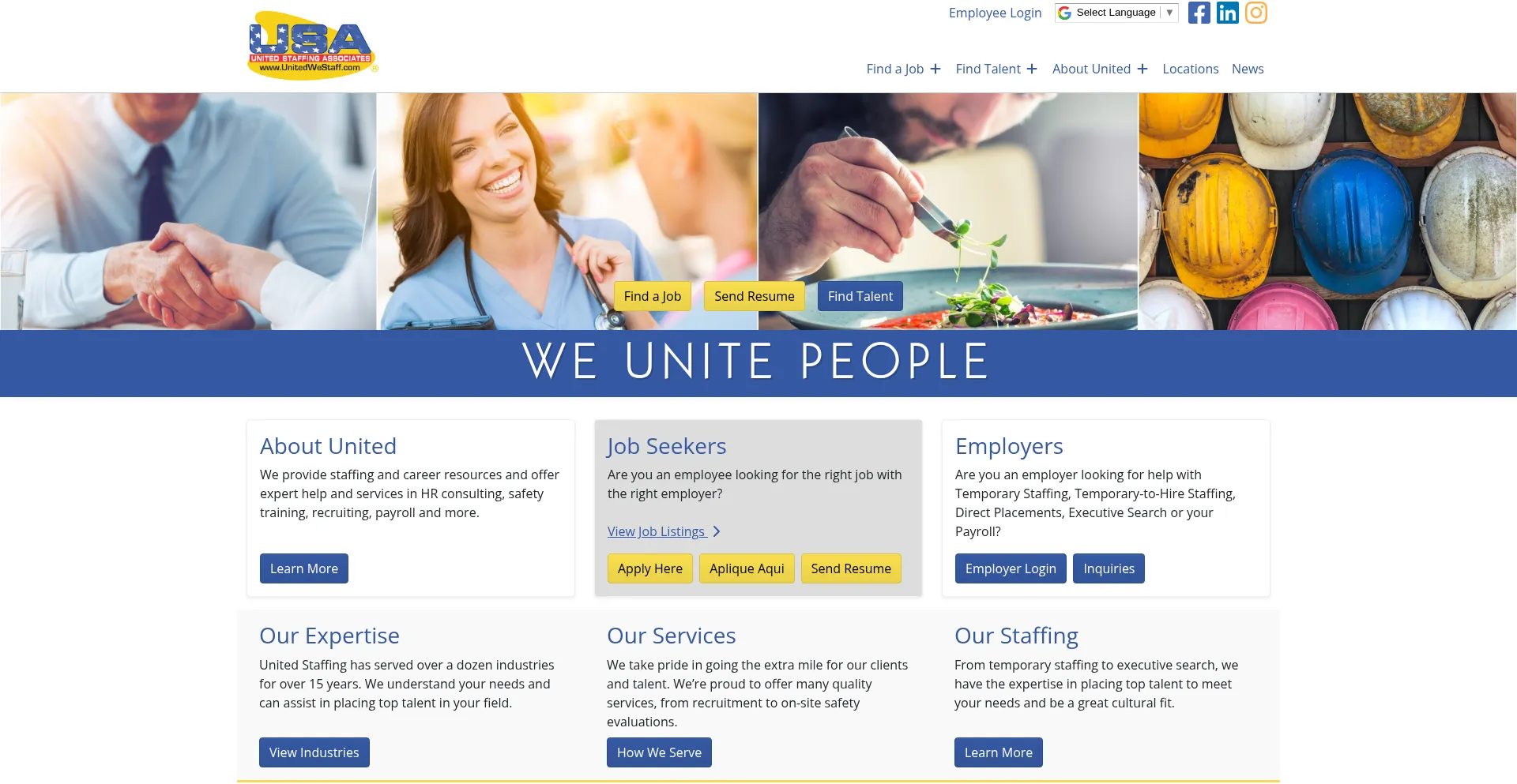 网站上存在社交媒体链接表明 unitedwestaff.com 在社交媒体上维护官方账户,这是可信度和参与度的积极信号。