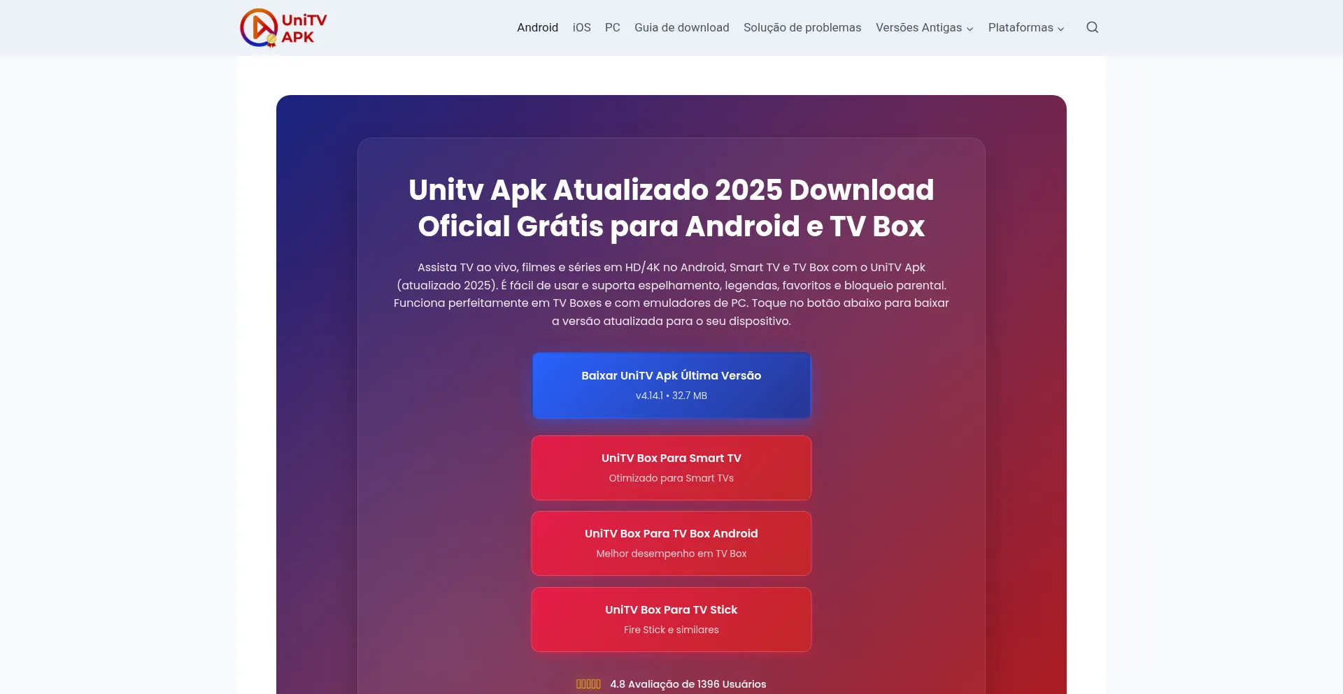 Unitv Apk Atualizado 2025 Download Grátis para Android, Smart TV e TV Box. Assista TV ao vivo, filmes e séries em HD/4K com fontes seguras.