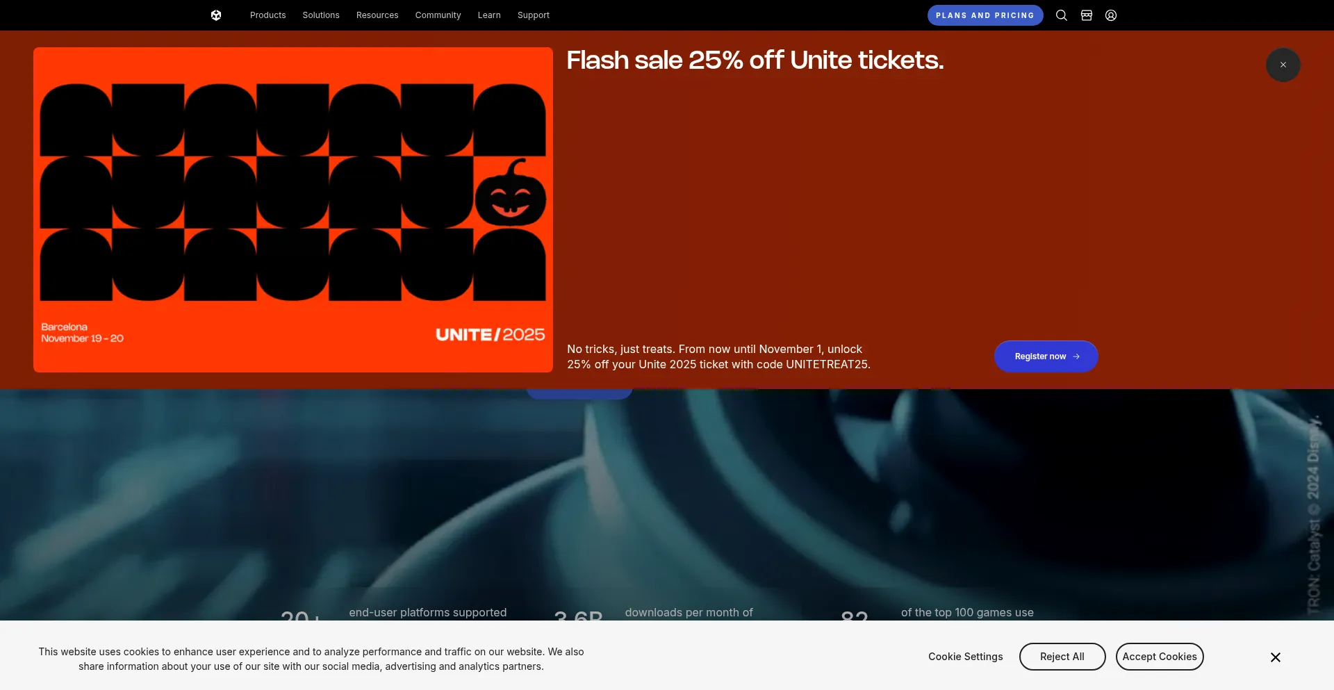 该网站实现符合GDPR或CCPA等隐私法规的cookie同意机制。这表明 unity3d.com 遵守数据保护标准并为用户提供对个人数据收集实践的控制。