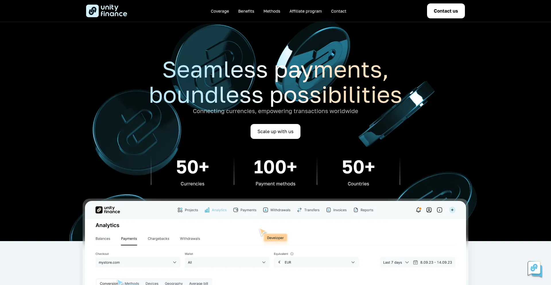 Unity Finance provides fast, secure, and scalable payment solutions. Accept over 50 currencies, 100+ payment methods, and operate in 150+ countries with global payment services....