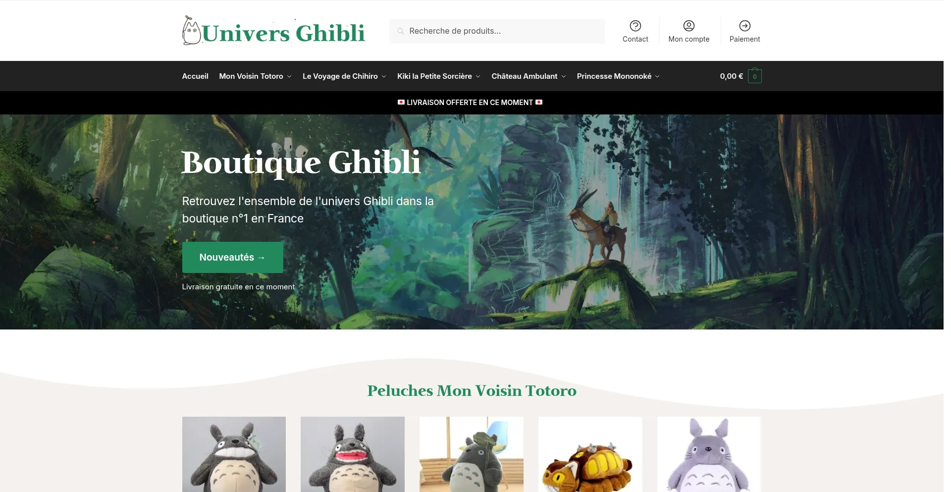Bienvenue dans la boutique Univers Ghibli, votre destination incontournable pour tous les fans de Studio Ghibli. Explorez une sélection magique de produits