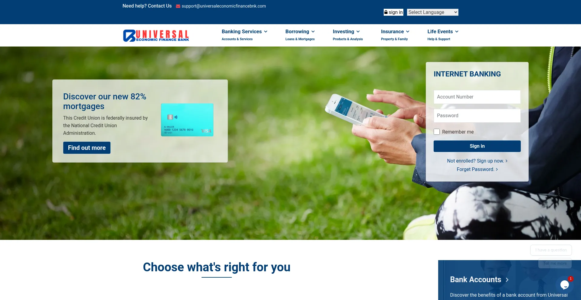 该网站实现数据收集表单,请求个人信息,包括姓名、电子邮件地址、电话号码或其他敏感详细信息。用户应验证 universaleconomicfinancebnk.com 的合法性并在提交个人数据前查看隐私政策。