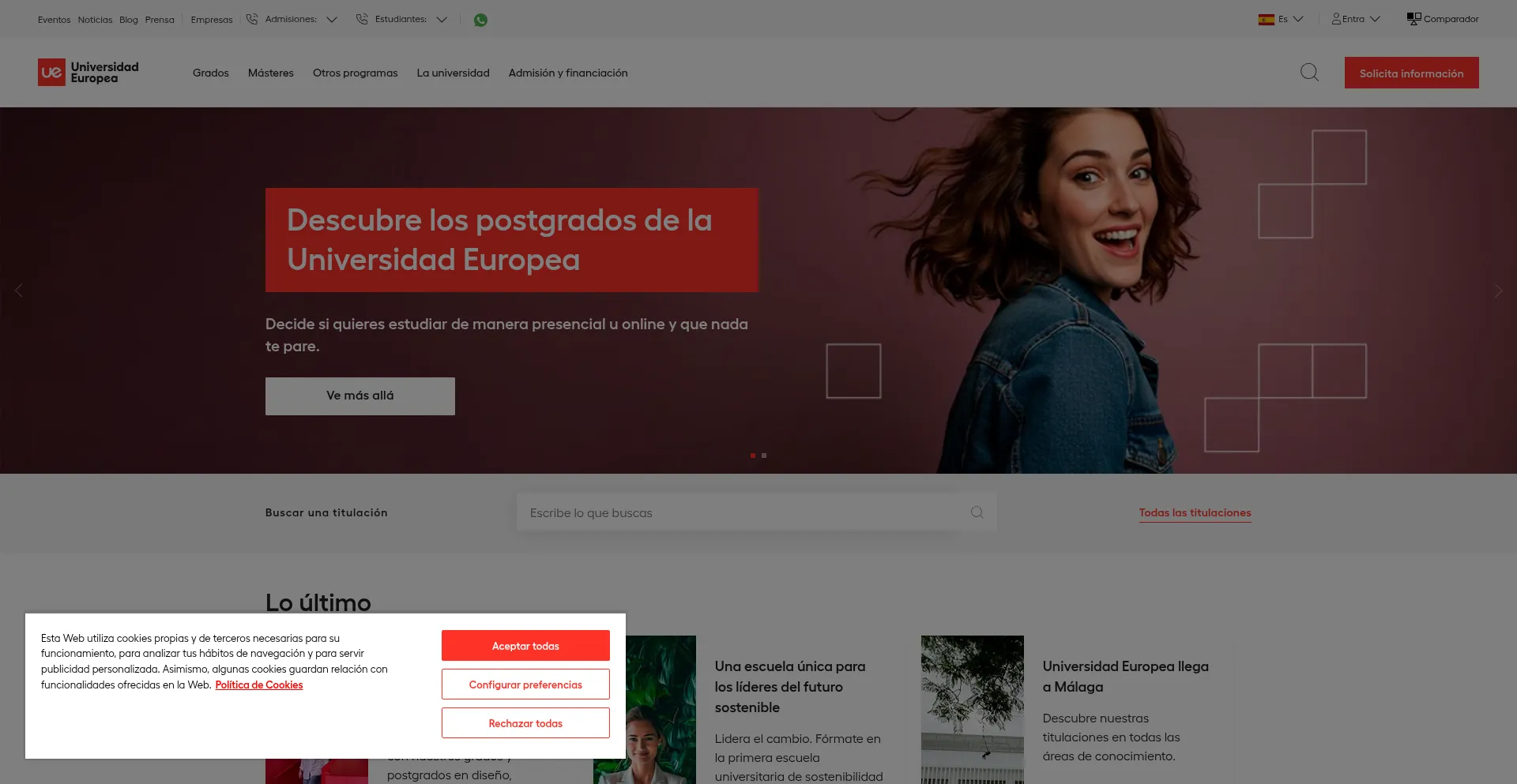 该网站实现符合GDPR或CCPA等隐私法规的cookie同意机制。这表明 universidadeuropea.com 遵守数据保护标准并为用户提供对个人数据收集实践的控制。