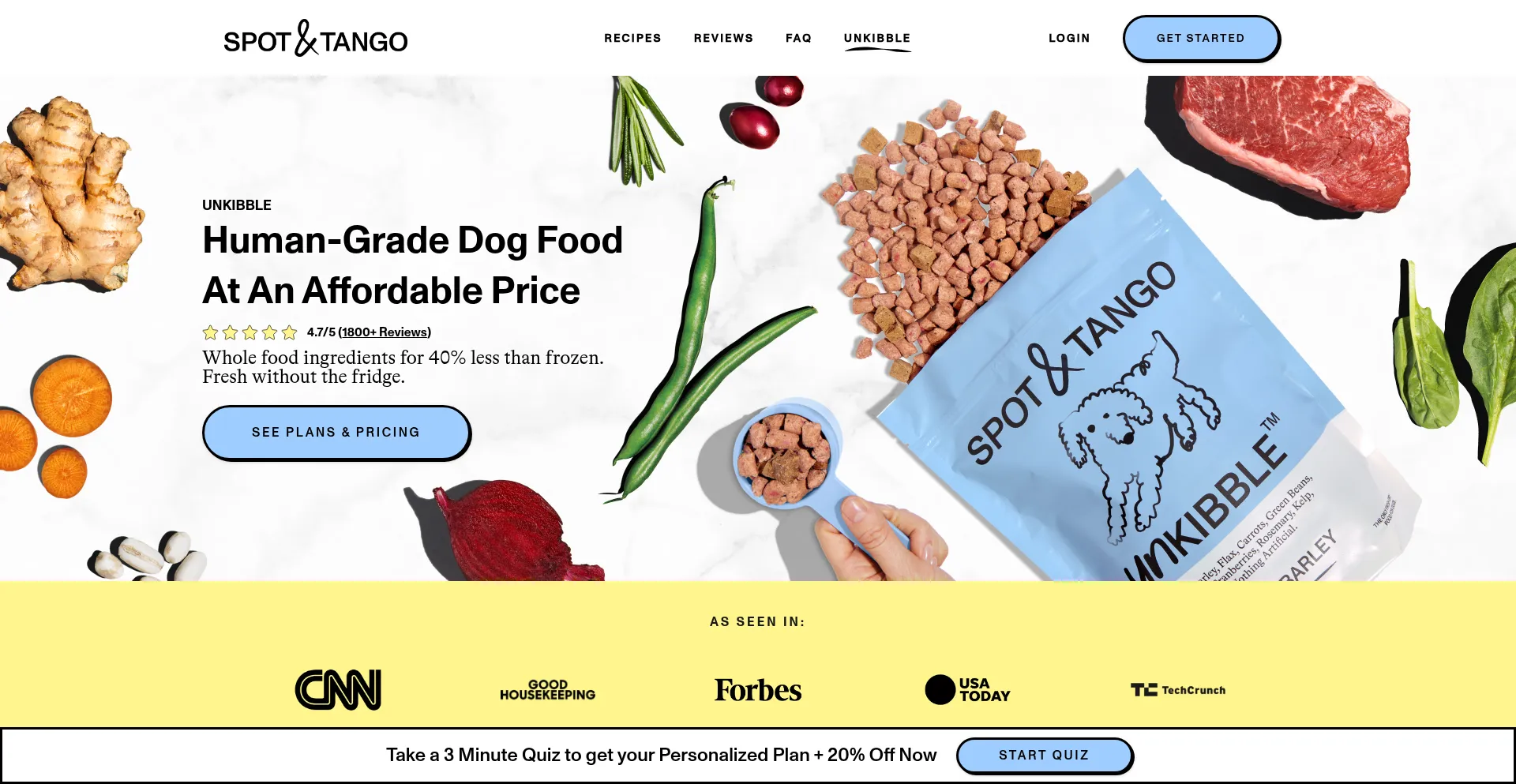Discover UnKibble™ by Spot & Tango – the only fresh dry dog food made with whole, non-processed ingredients. A healthy alternative to traditional kibble!