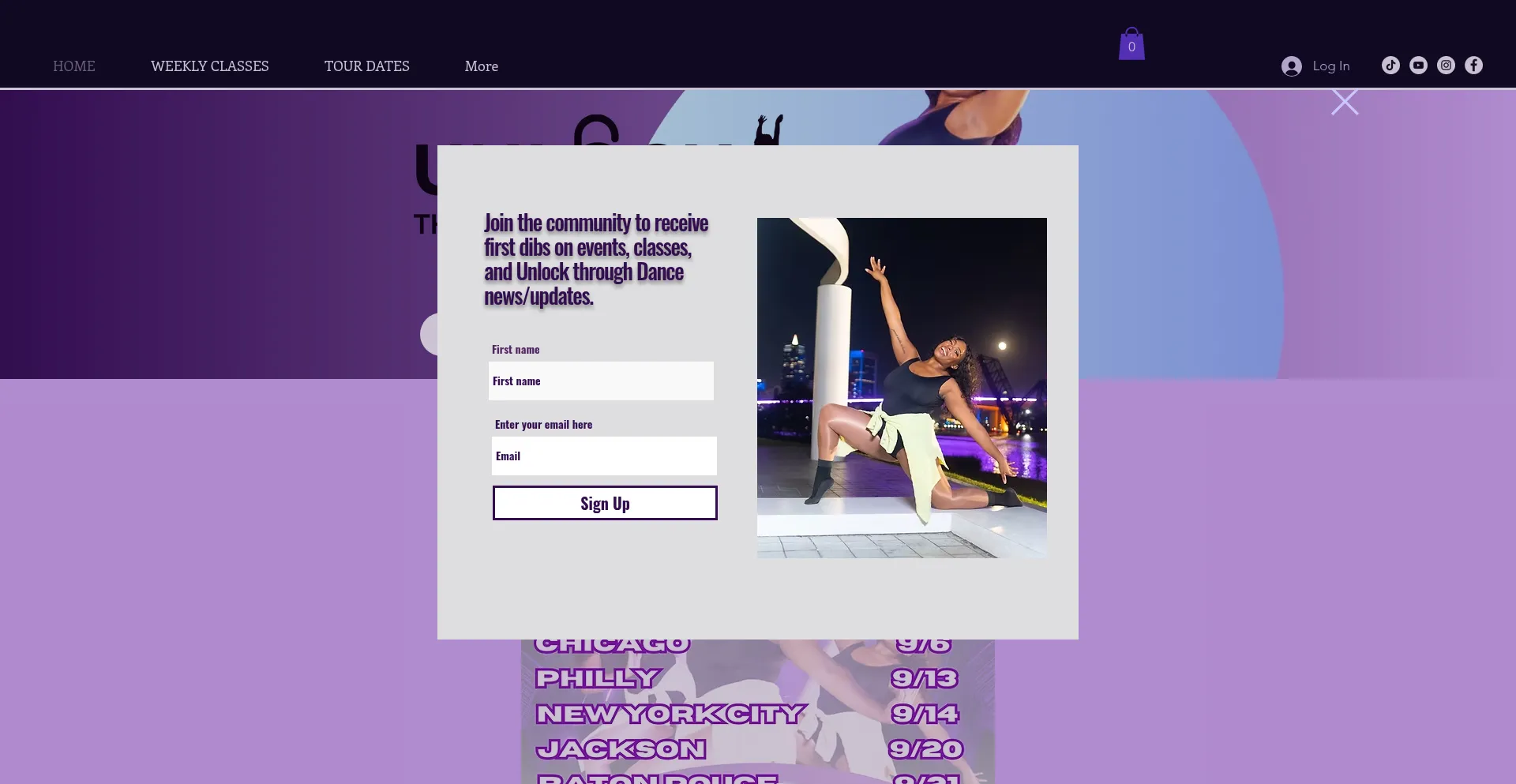 该网站实现数据收集表单,请求个人信息,包括姓名、电子邮件地址、电话号码或其他敏感详细信息。用户应验证 unlockthroughdance.com 的合法性并在提交个人数据前查看隐私政策。