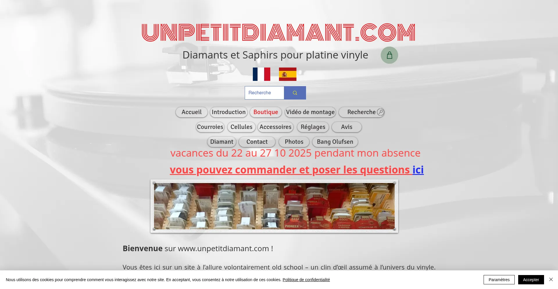 Vente de diamants et saphirs pour platines vinyles. 14900 platines, 4700 têtes de lectures et plus de 1800 diamants et saphirs de référencés. Acheter un diamant de qualité,...