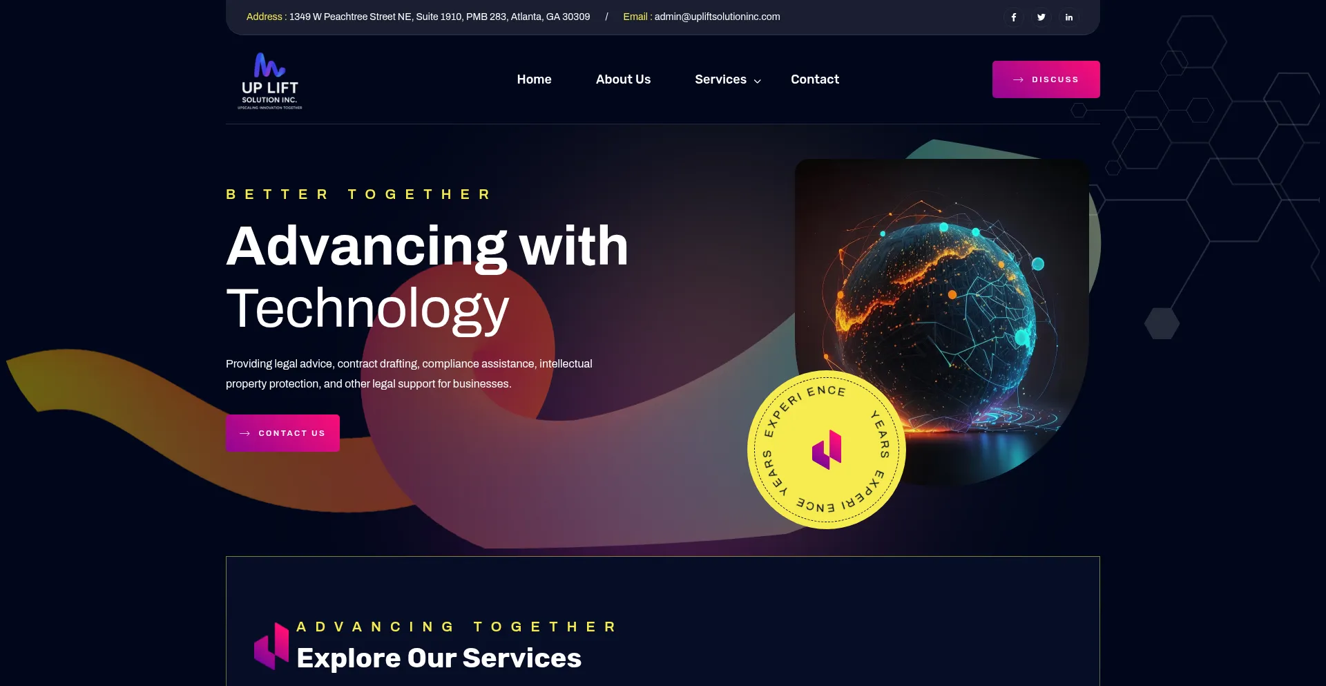 upliftsolutioninc.com 使用 Bootstrap,这是一个广泛采用的开源响应式网页开发框架。Bootstrap 通过标准化组件和样式实现移动友好界面的高效创建。