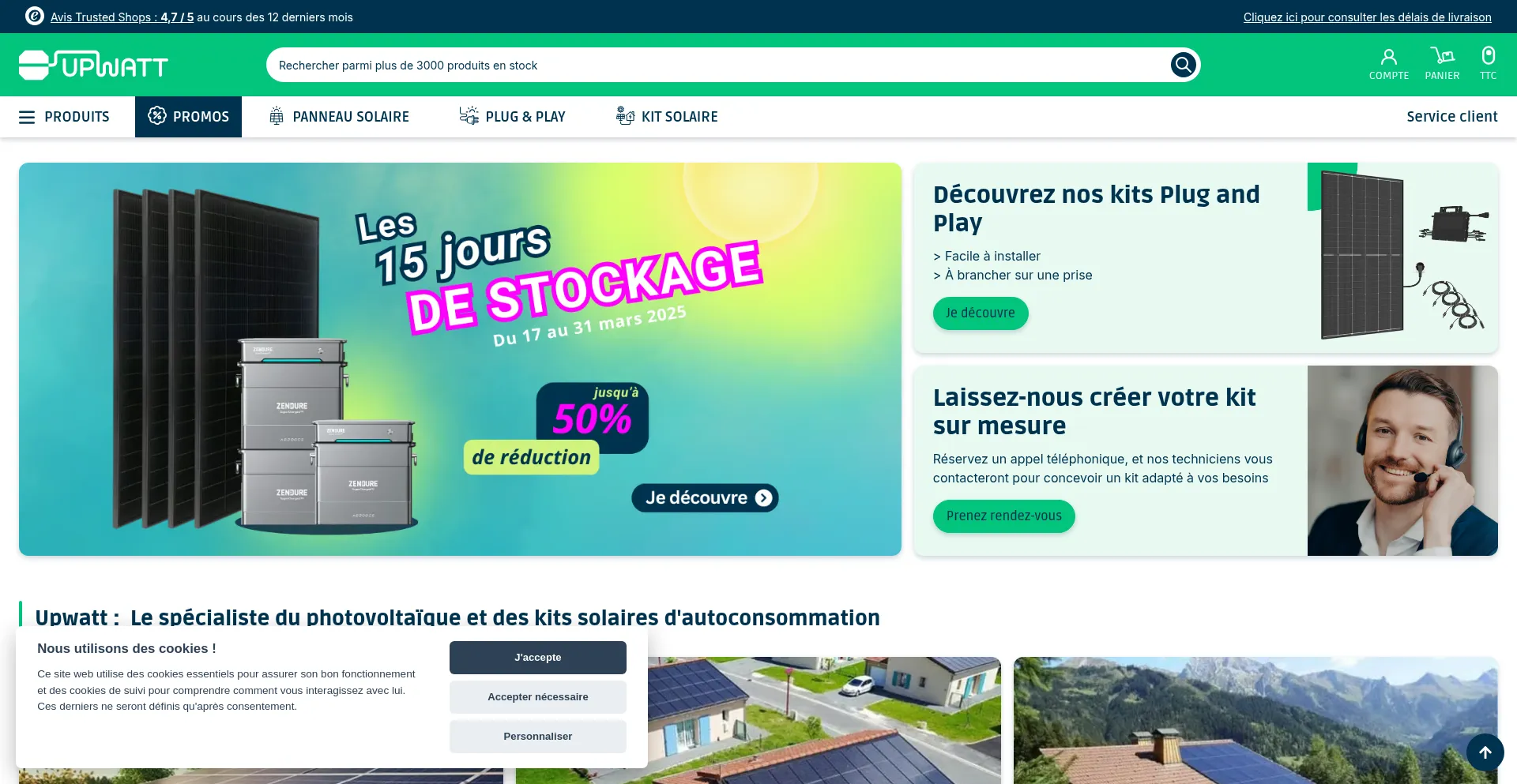 Vente de solutions solaires à monter soi-même. UpWatt offre un rapport qualité prix imbattable sur des milliers de produits et accélère la transition écologique