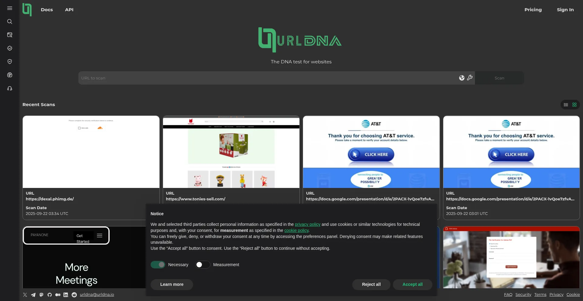 urlDNA: The definitive DNA test for websites. Analyzes URLs for phishing, malware, tech stack, and brand impersonation. Powerful API & Python package for developers.