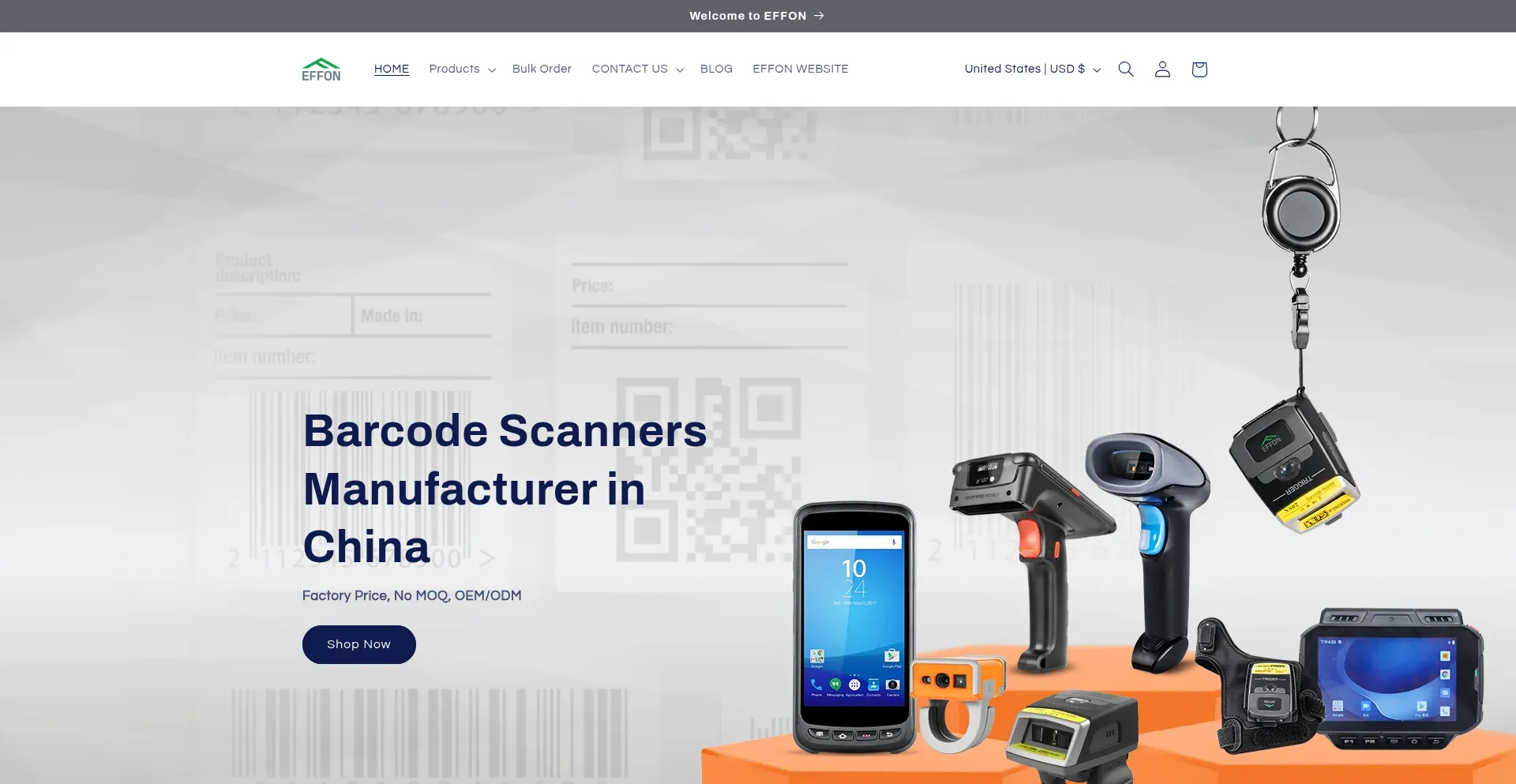 EFFON is a trusted China barcode scanner factory supplier with 15+ years experience. We offer OEM/ODM, no MOQ, and high-quality Wireless Barcode Scanner for global businesses.