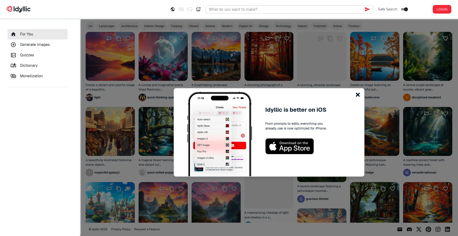 us.idyllic.app 拥有可用的 iOS 移动应用程序,表明为 Apple 设备用户提供跨平台可访问性。