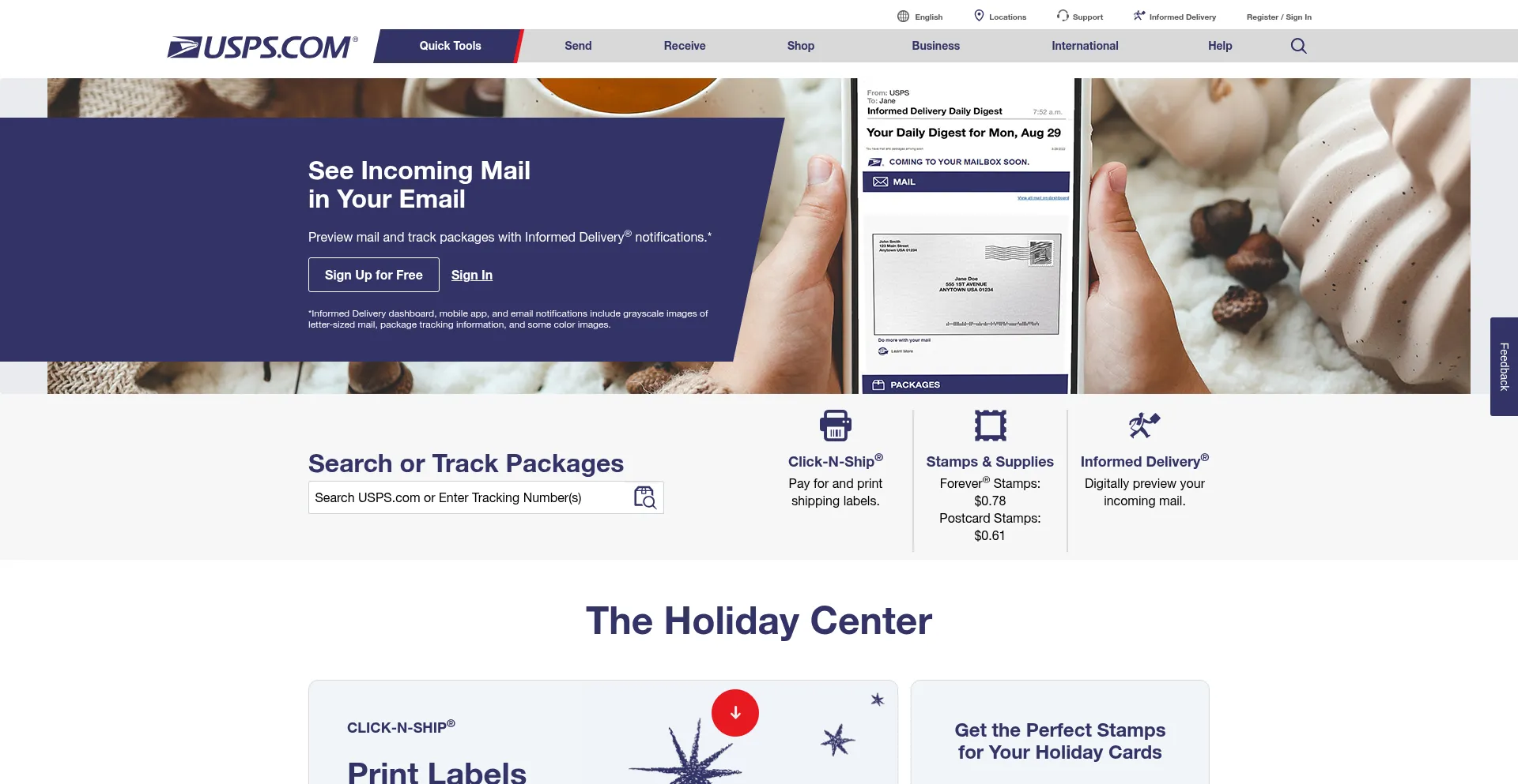 Welcome to USPS.com. Track packages, pay and print postage with Click-N-Ship, schedule free package pickups, look up ZIP Codes, calculate postage prices, and find everything you...