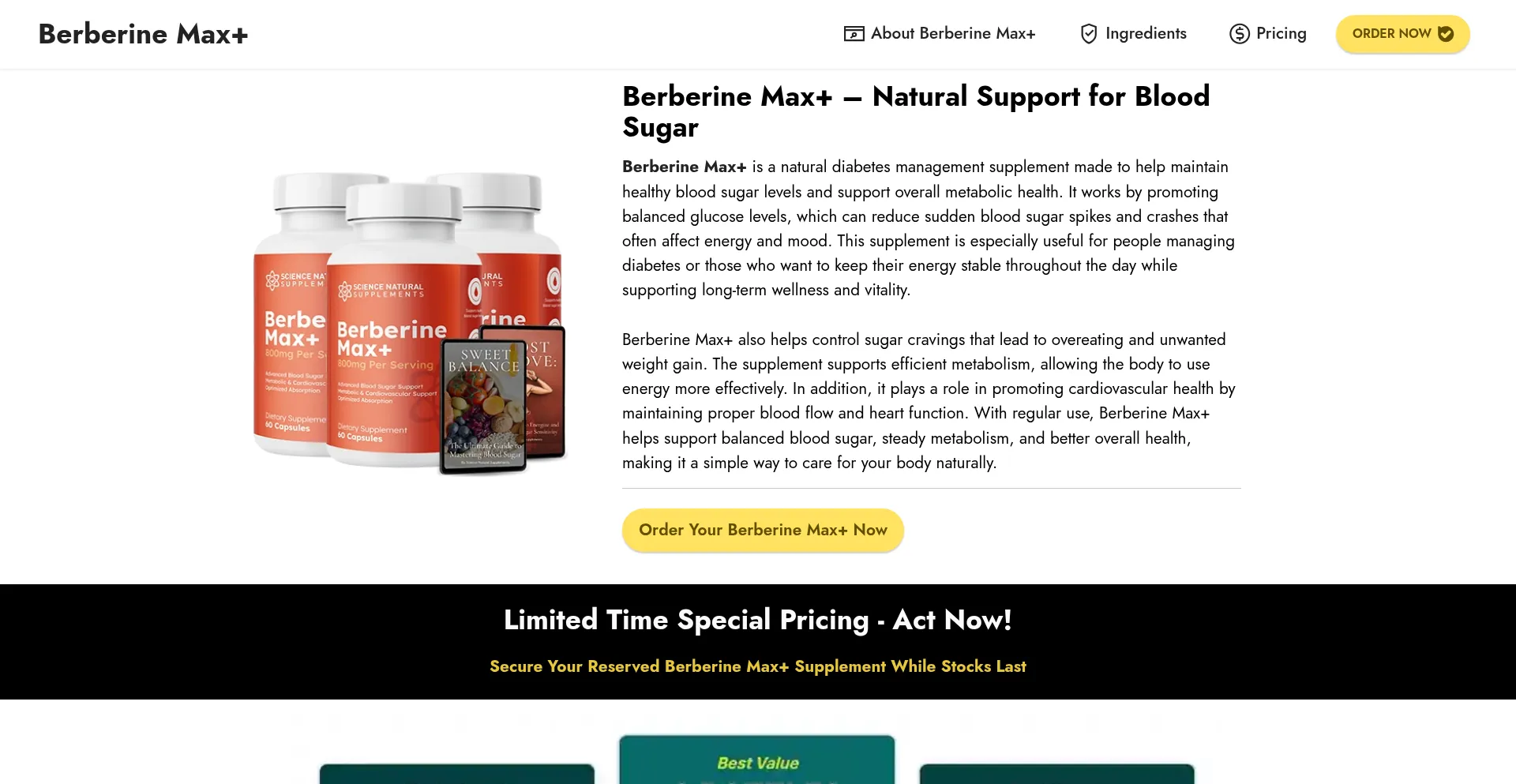 Berberine Max+ is a natural blood sugar supplement that supports healthy glucose levels, balanced metabolism, and effective diabetes management naturally.