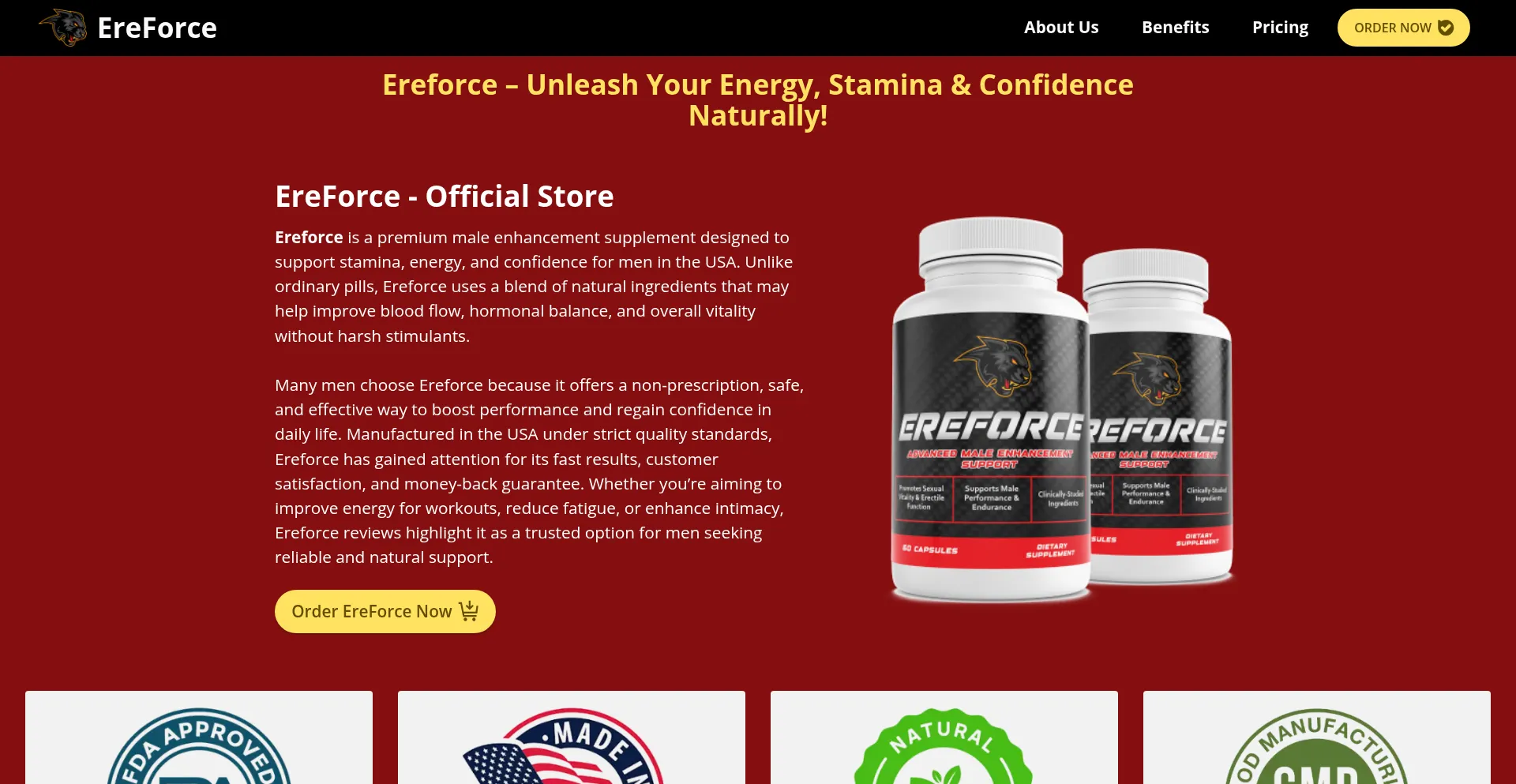Discover Ereforce, a premium male enhancement supplement in the USA. Enhance blood flow, energy, and stamina with its natural, doctor-formulated formula.