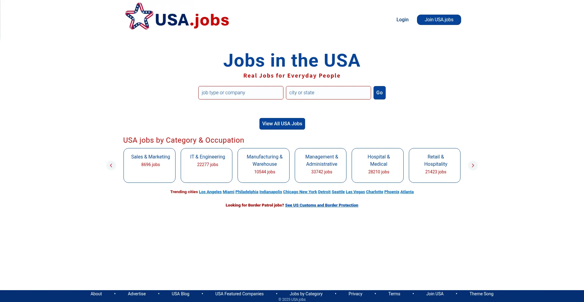 USA.jobs Looking for jobs in the USA? Join USA.jobs to create your free profile. Hundreds of companies listing thousands of new jobs in the USA. By company, city and state. Real...