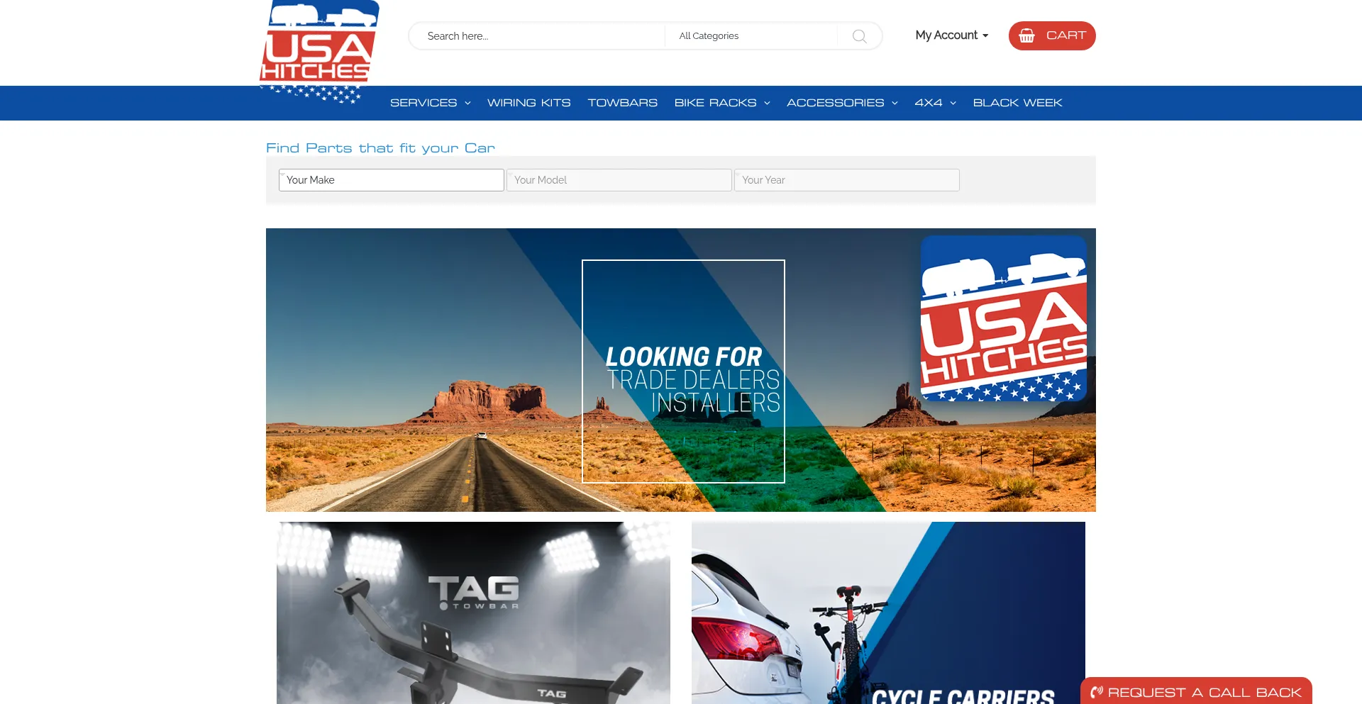 usahitches.com 使用 Bootstrap,这是一个广泛采用的开源响应式网页开发框架。Bootstrap 通过标准化组件和样式实现移动友好界面的高效创建。
