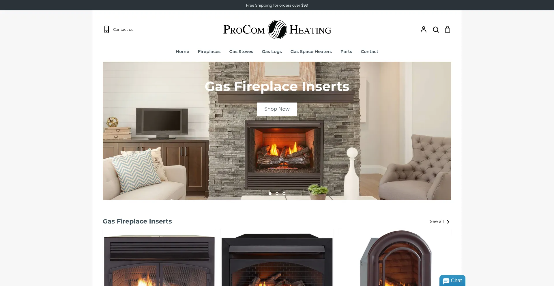 ProCom Heating is the Leader In gas heating products. We offer a full line of fireplaces, gas log sets, wall heaters, garage heaters, outdoor heaters, tank top heaters, convecti...