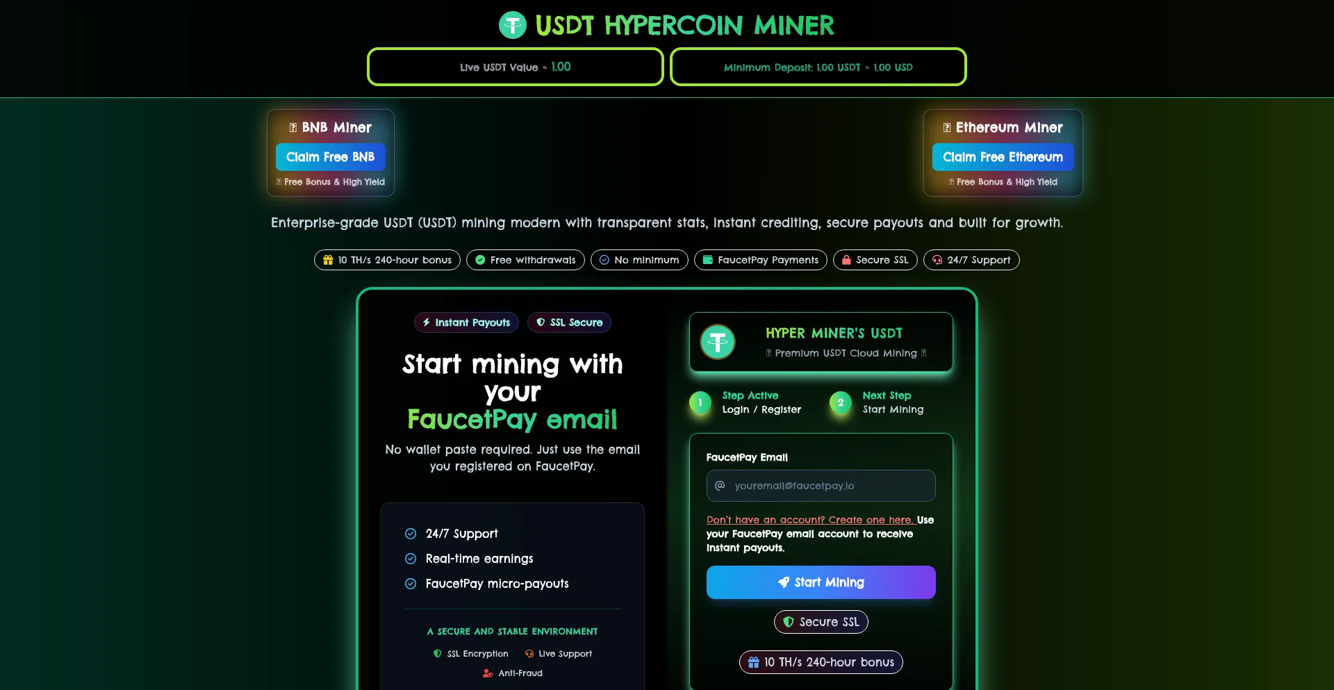 网站 usdt.hyperprofitcoin.site 可能提供云挖矿服务或加密货币挖矿投资。一些平台提供合法的挖矿租赁服务,而其他平台可能使用虚假的挖矿仪表板来显示无法提取的虚拟收益。