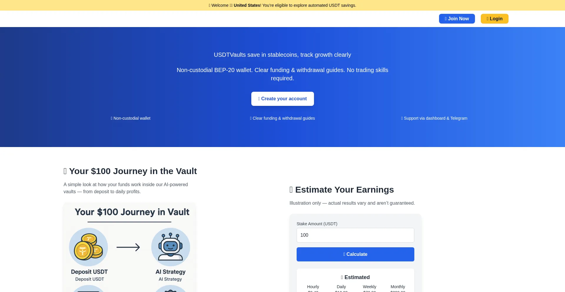 Explore AI-powered USDT staking with USDTVaults — a trusted platform for automated crypto savings. No trading skills needed.