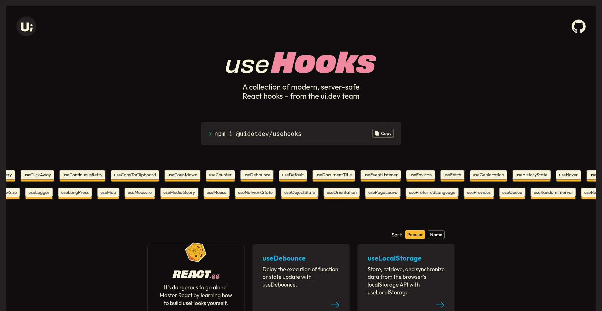 A collection of modern, server-safe React hooks – from the ui.dev team