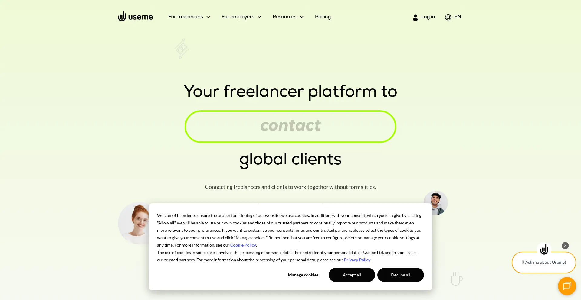 Your freelancer platform to invoice and manage clients worldwide. Join Useme and work with no formal borders or paperwork. Trusted by +170k freelancers
