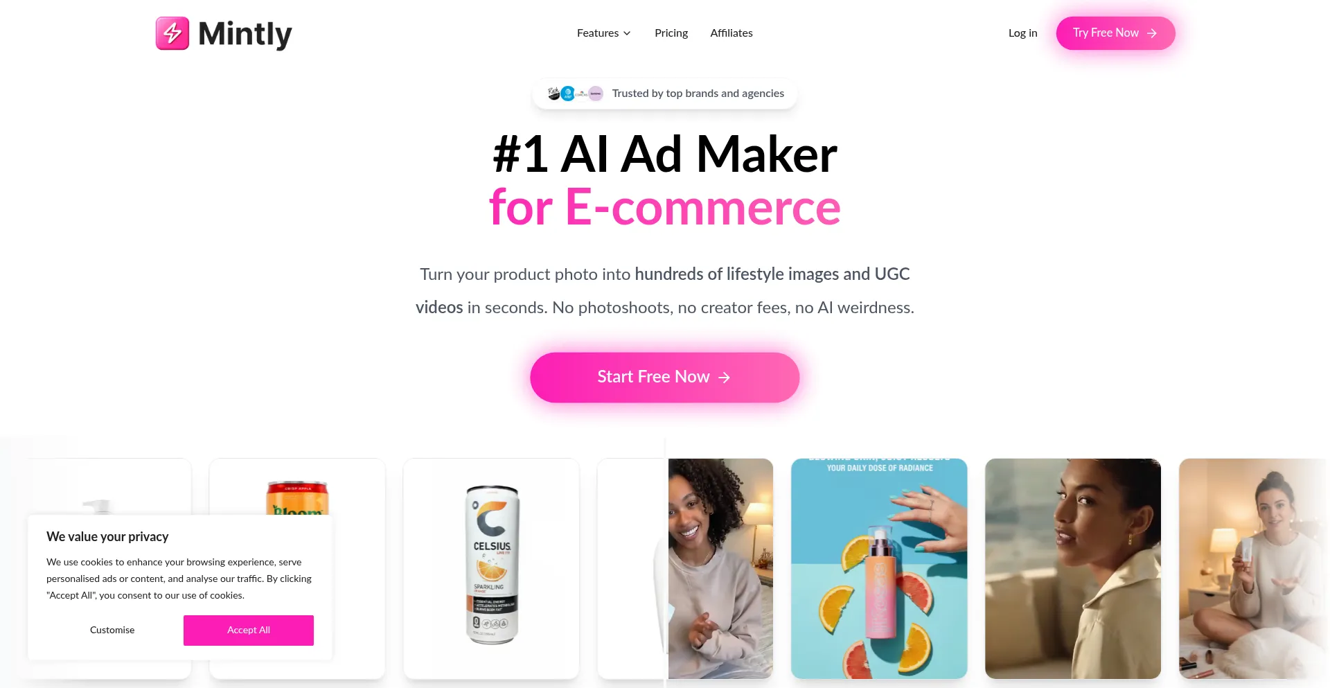 Mintly | AI Ad Generator - UGC Videos, Product Ads & Models