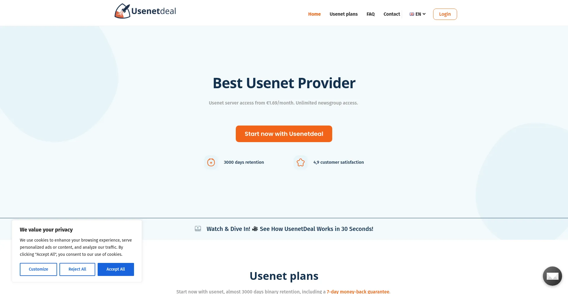 Usenet provider Usenetdeal for Usenet & Newsgroup at $1,81 /mo