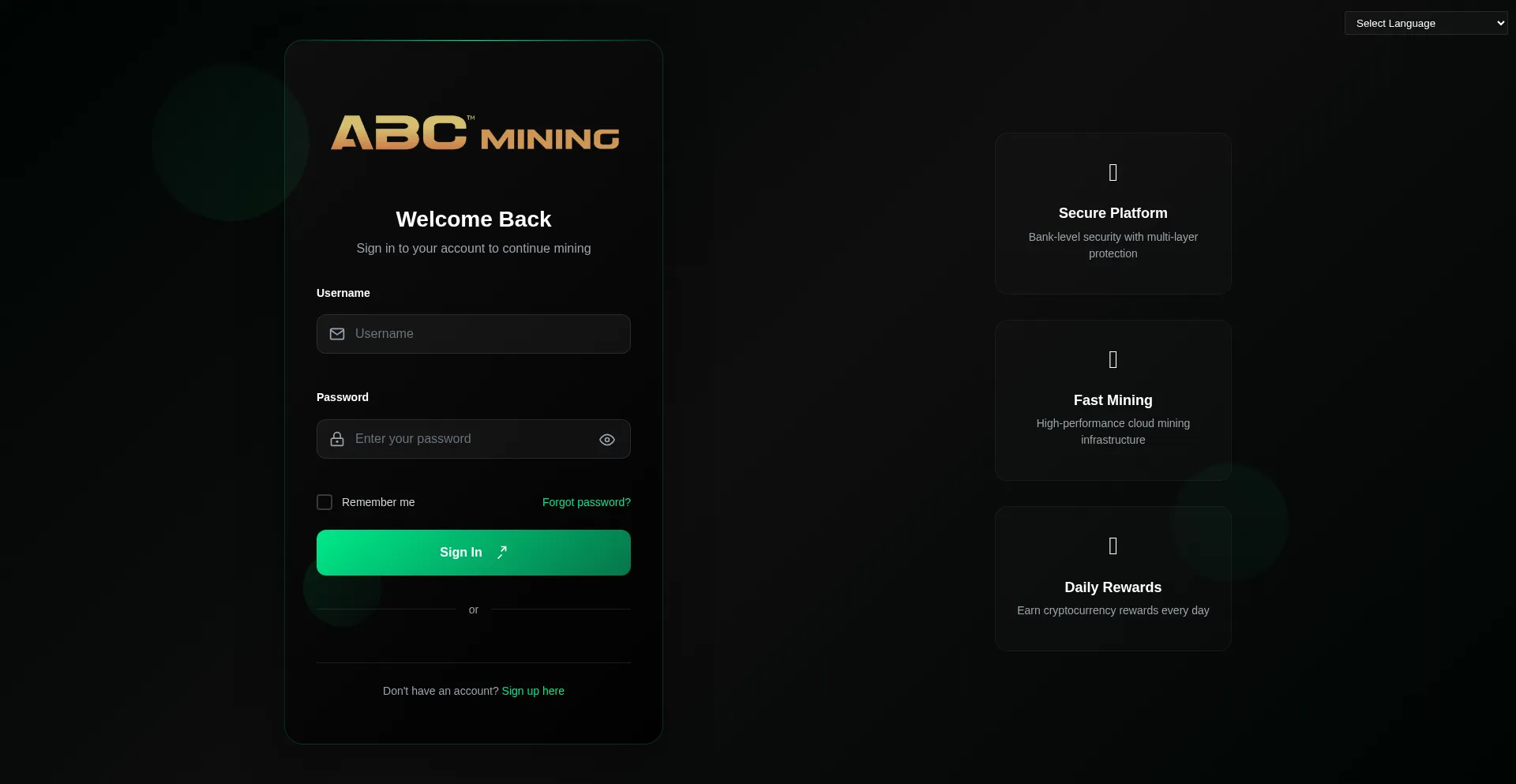 网站 user.abcmining.pro 可能提供云挖矿服务或加密货币挖矿投资。一些平台提供合法的挖矿租赁服务,而其他平台可能使用虚假的挖矿仪表板来显示无法提取的虚拟收益。