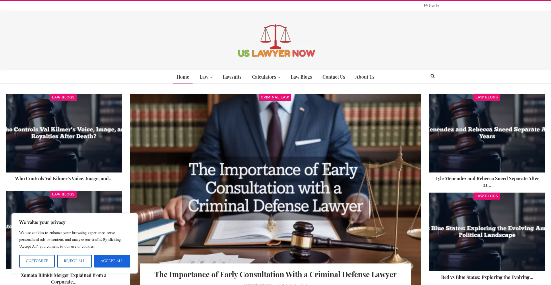该网站实现符合GDPR或CCPA等隐私法规的cookie同意机制。这表明 uslawyernow.com 遵守数据保护标准并为用户提供对个人数据收集实践的控制。