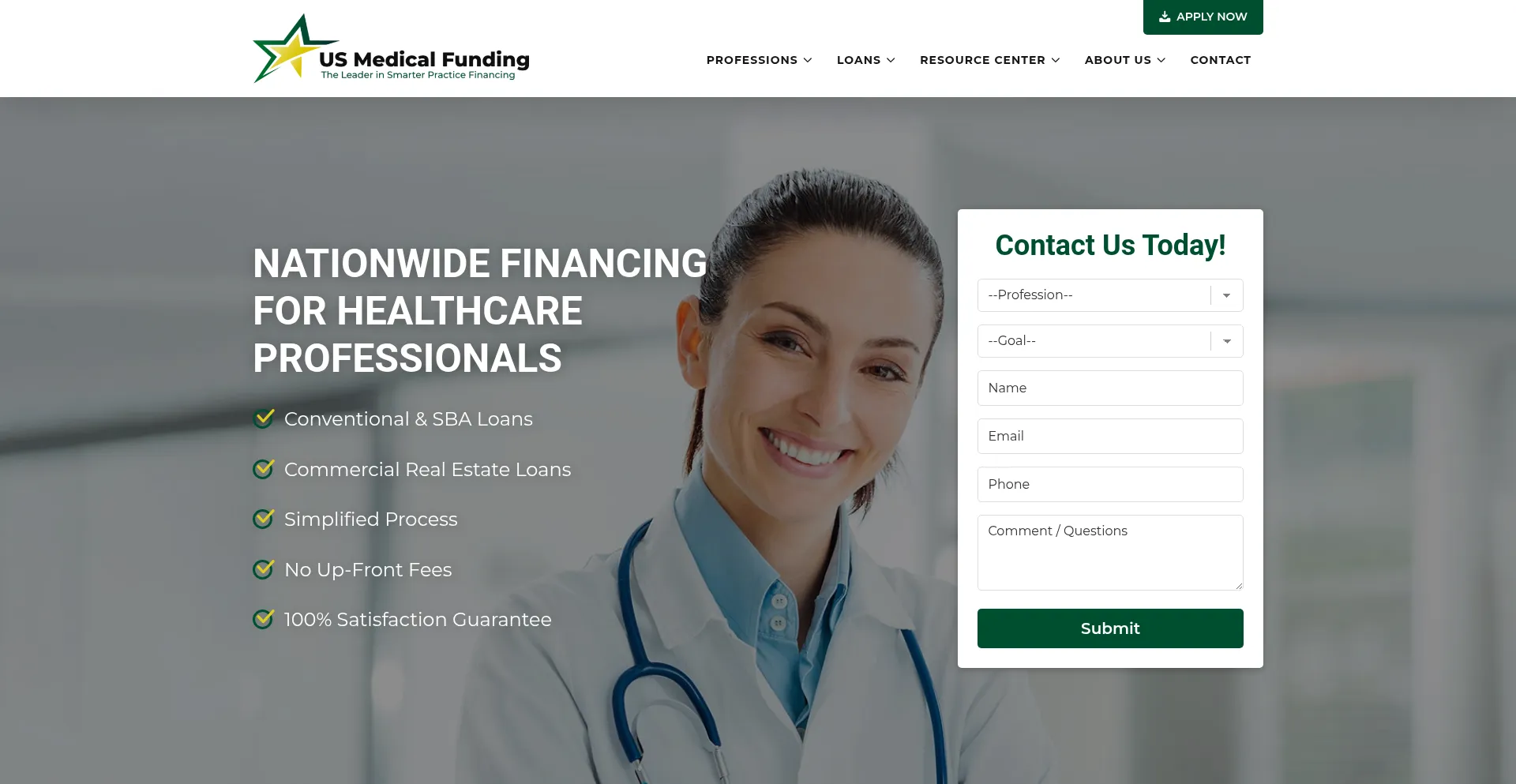 We offer simpler, smarter medical practice financing with no up-front fees, conventional & SBA financing, and 100% satisfaction guarantee.