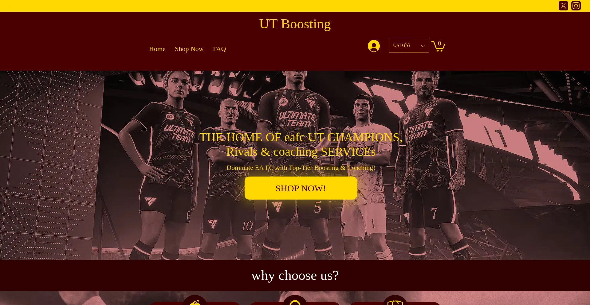 网站上存在社交媒体链接表明 utboosting.com 在社交媒体上维护官方账户,这是可信度和参与度的积极信号。