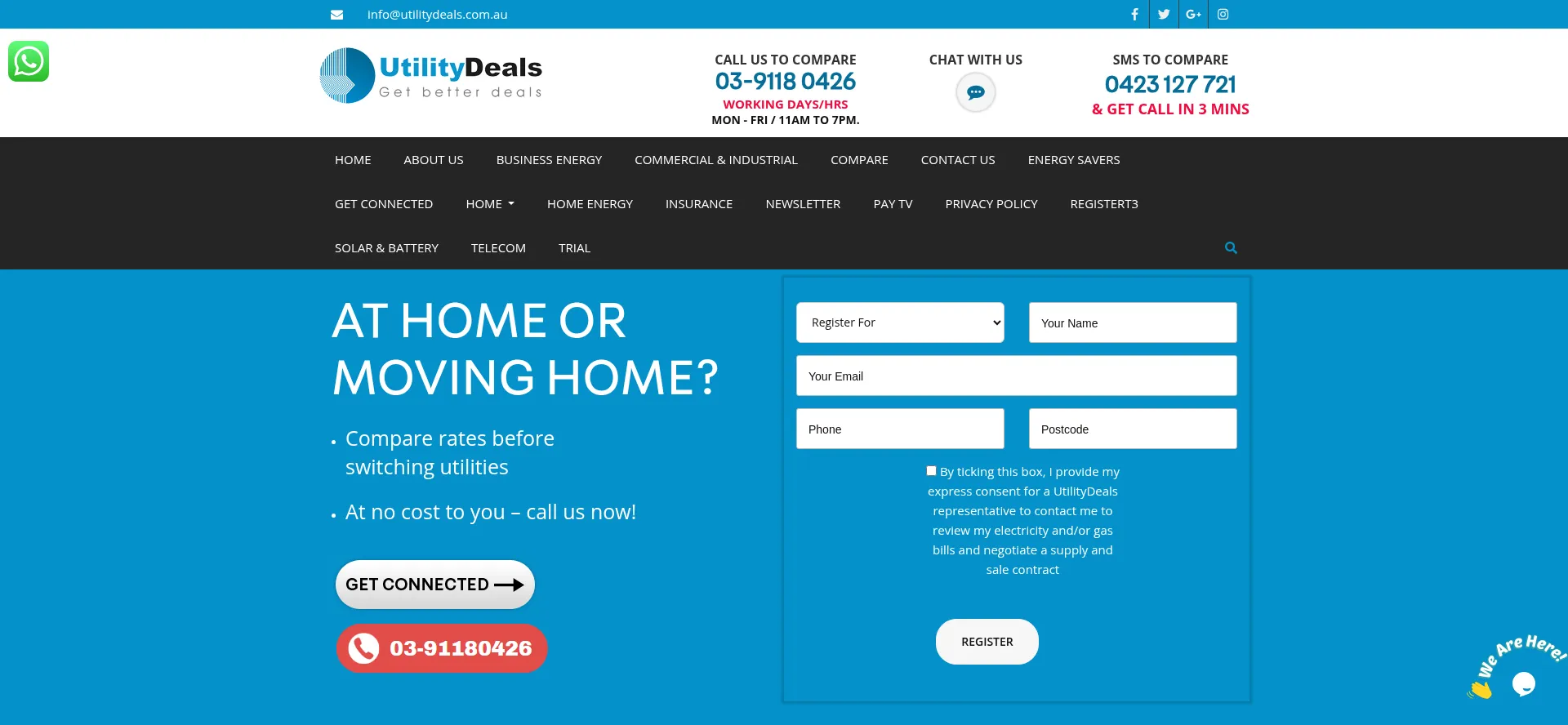 AT HOME OR MOVING HOME? Compare rates before switching utilities At no cost to you – call us now! UtilityDeals can organise a SWITCH or a NEW CONNECTION for your premises in W...