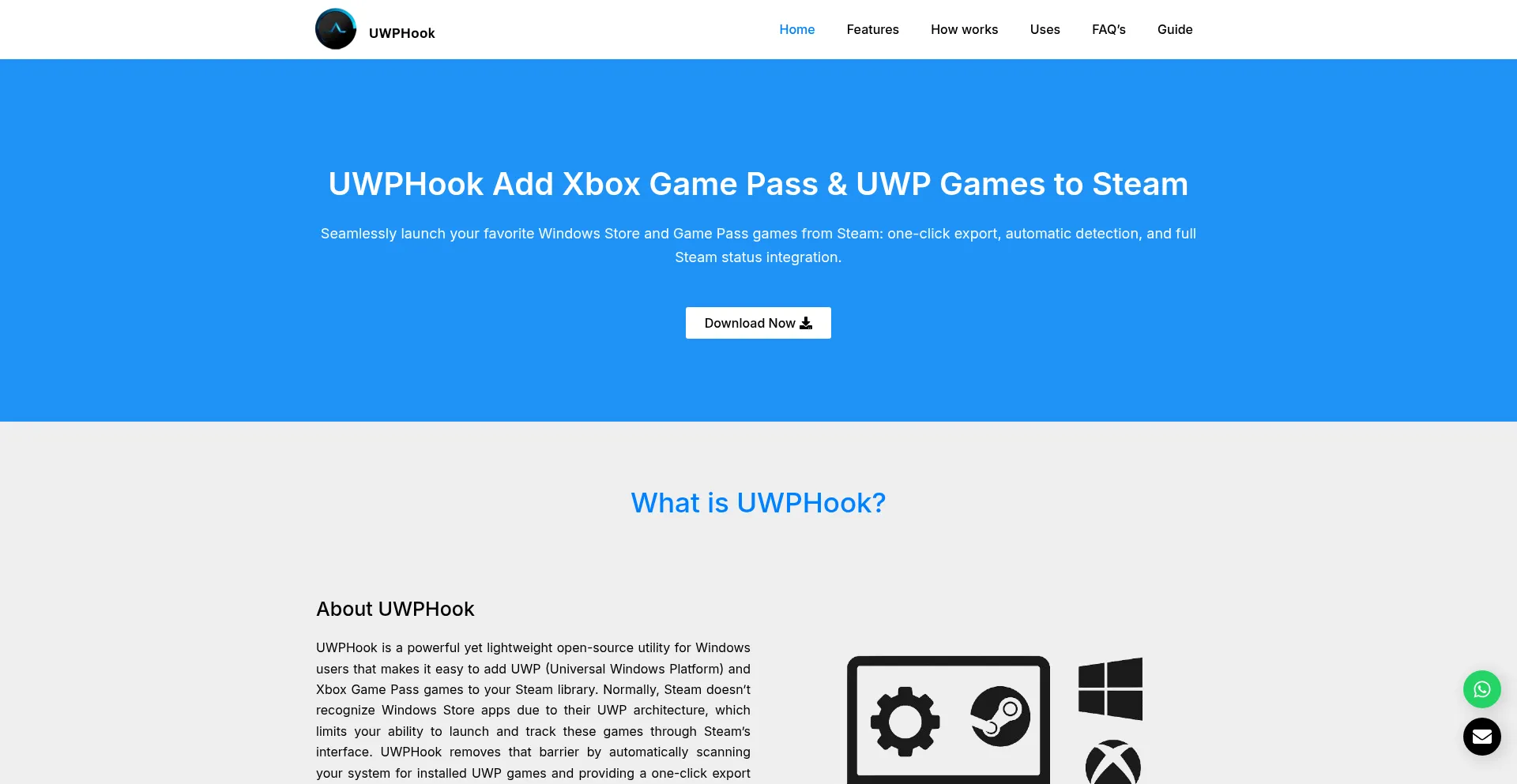 UWPHook lets you add UWP and Xbox Game Pass games to Steam, with auto image import from SteamGridDB and easy shortcut management. #UWPHook