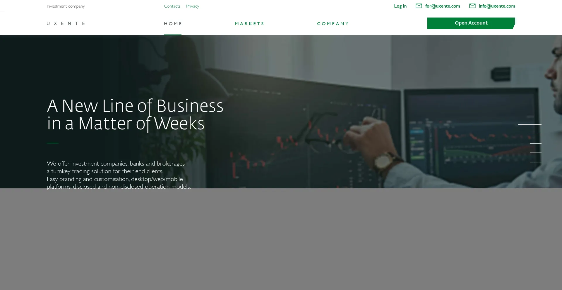 Financial broker for professionals. Direct access to over 50 financial markets from a single account from the official website of uxente.com investment company.