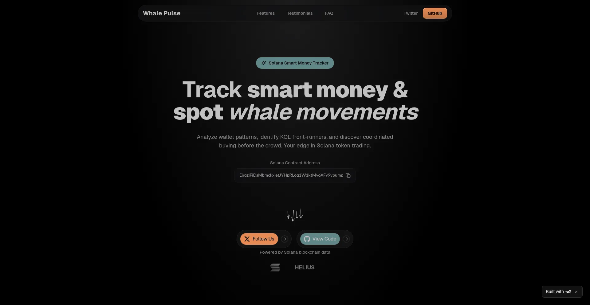 帮助保护他人,快在社交媒体上分享此页面吧!知道v0-whalepulseai.vercel.app的人越多,骗子就越难得逞。 通过在社交媒体上分享此页面,帮助更多人发现可靠的v0-whalepulseai.vercel.app吧!