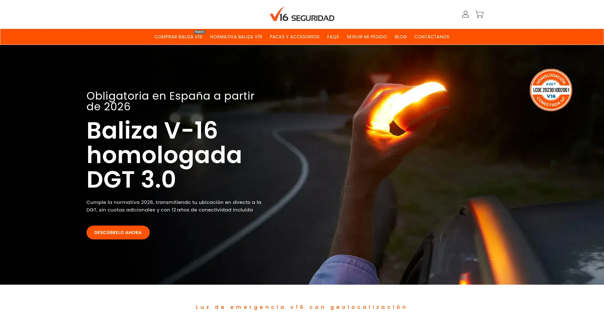 Empresa española especializada en luz de emergencia V16 homologada y conectada DGT 3.0. Obligatoria desde el 1 de enero de 2026 🇪🇸. Cumple 100 % con la normativa oficial.