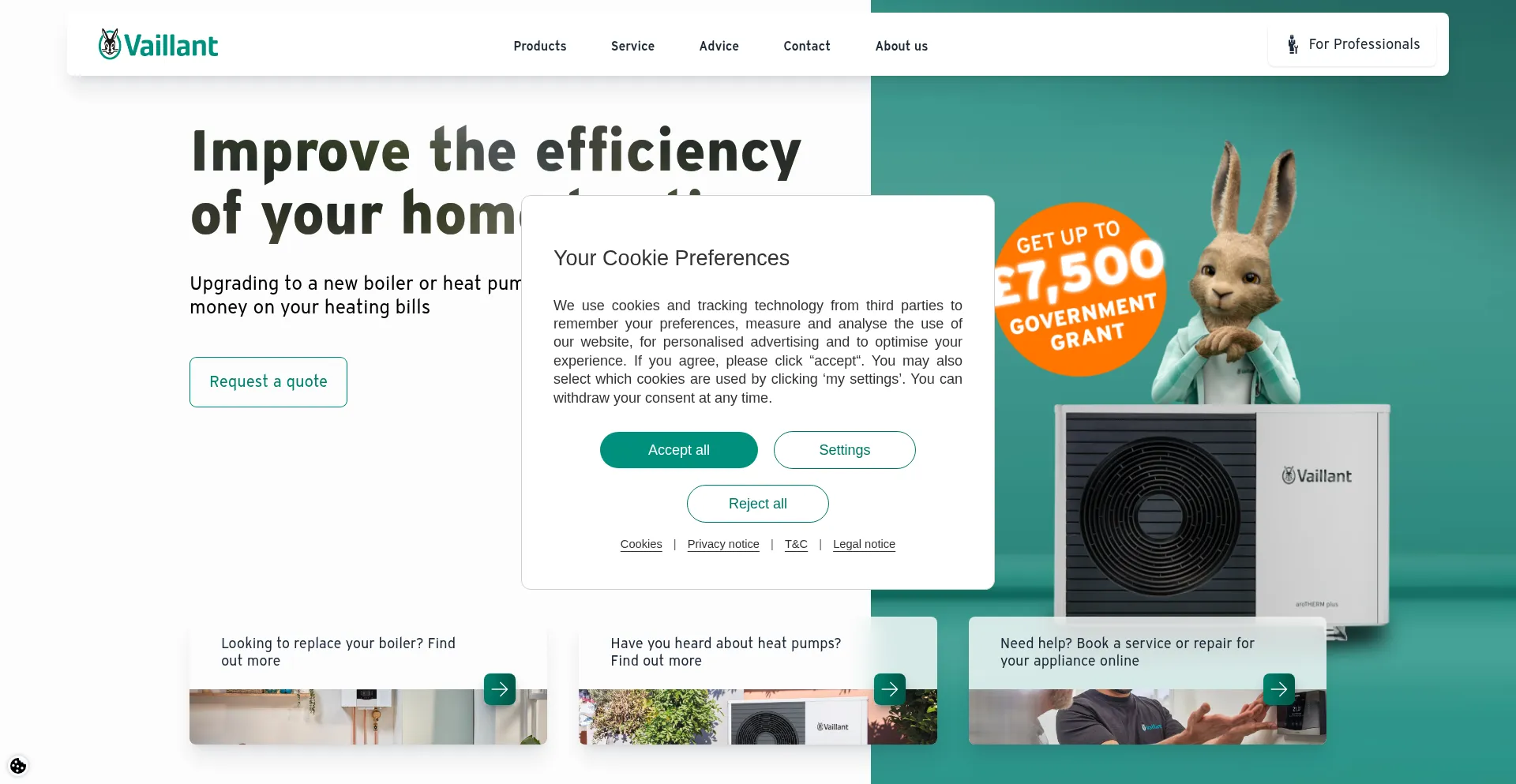 vaillant.co.uk 使用 Google Tag Manager 在其网站上添加和更新追踪代码(标签)。