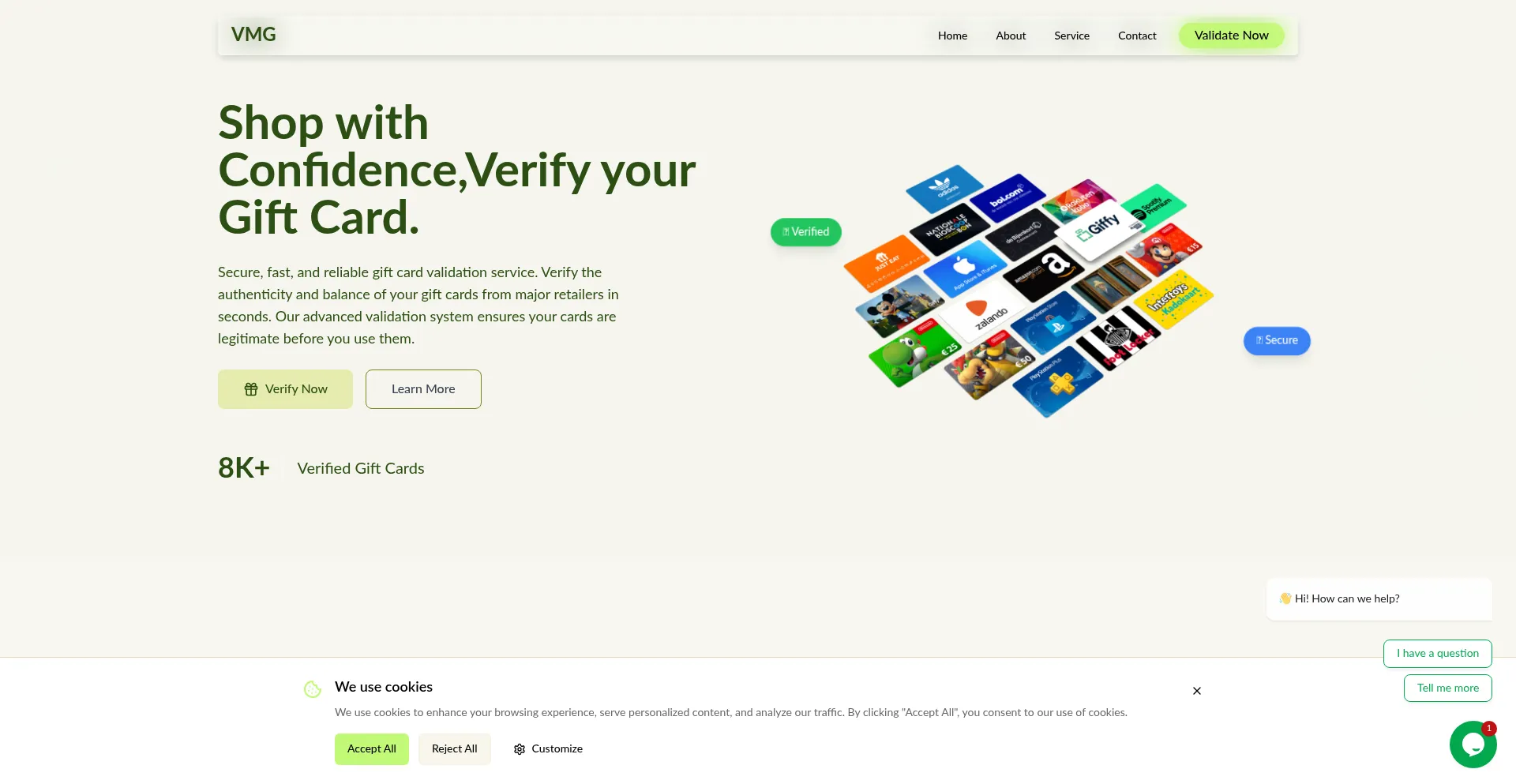 该网站实现符合GDPR或CCPA等隐私法规的cookie同意机制。这表明 validatemygift.com 遵守数据保护标准并为用户提供对个人数据收集实践的控制。