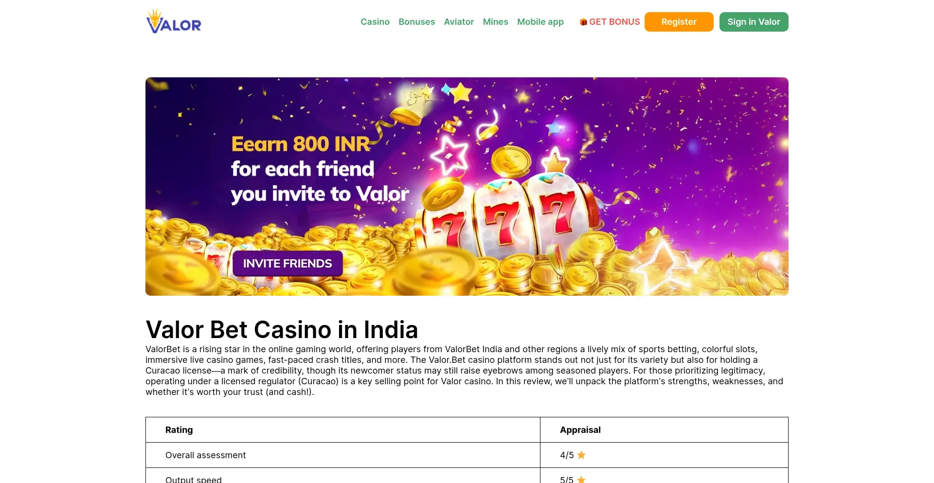 Valor Casino - Indian service for betting and playing slots 🔥 Simple withdraw and quick deposit. Don't miss your chance to hit the jackpot at ValorBet Casino India