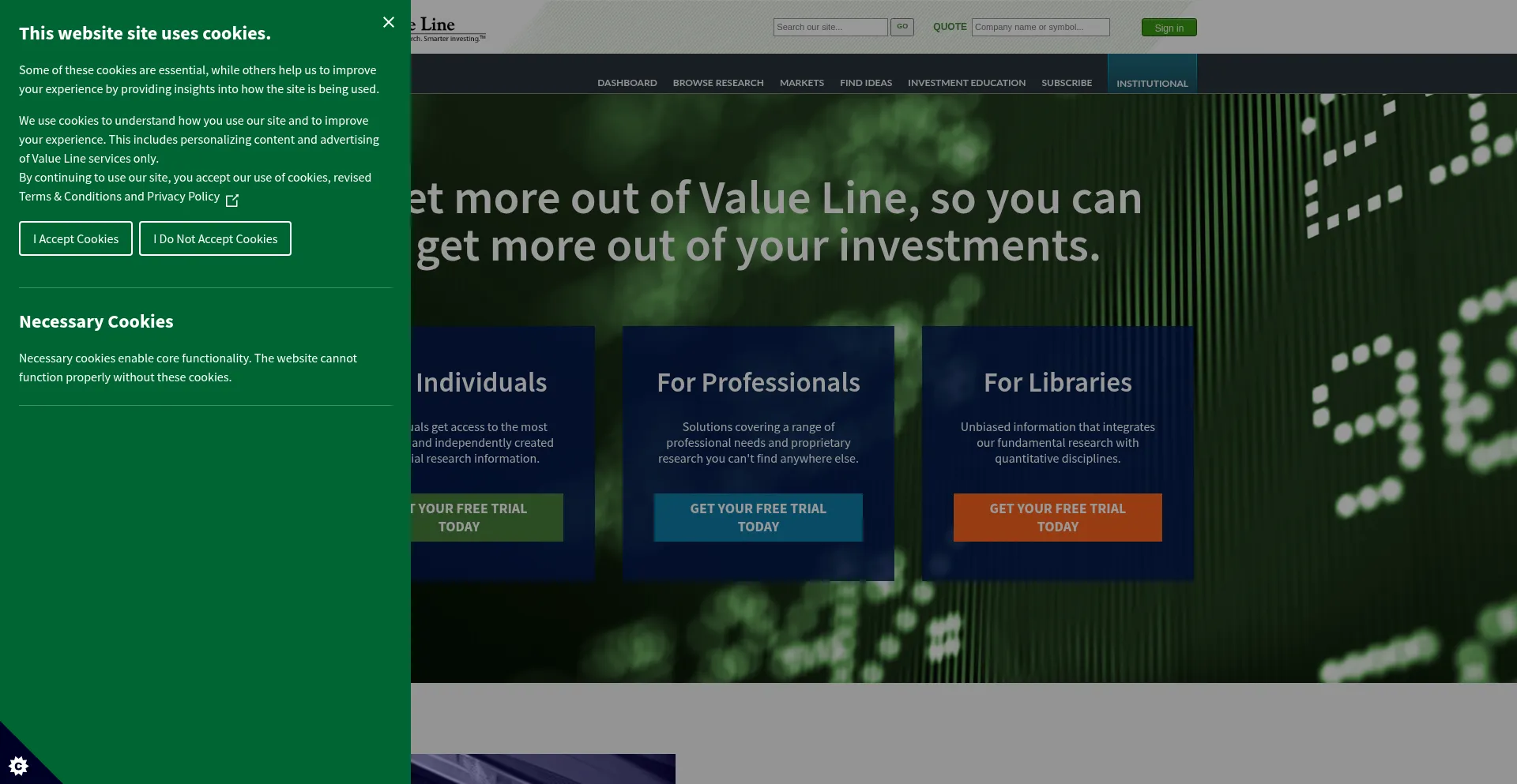 该网站实现符合GDPR或CCPA等隐私法规的cookie同意机制。这表明 valueline.com 遵守数据保护标准并为用户提供对个人数据收集实践的控制。