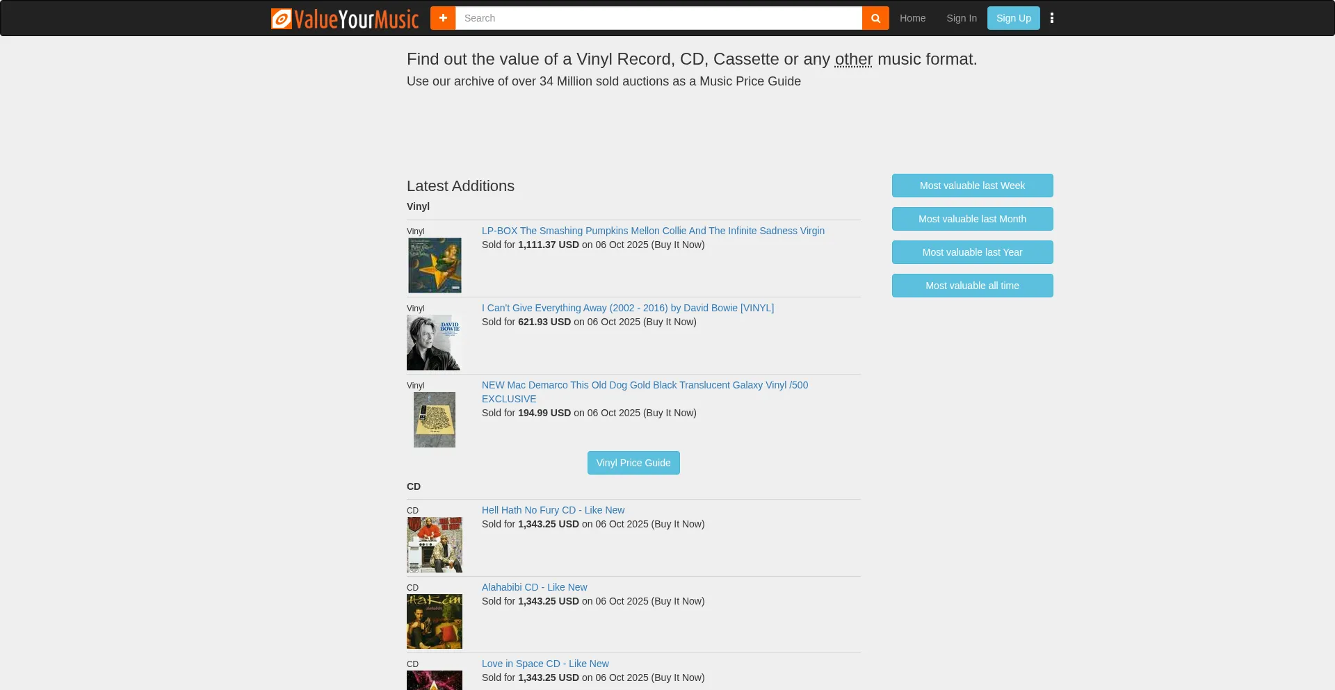 ValueYourMusic - Free Price Guide for rare Vinyl Records, CDs, Cassettes, 78 rpm
