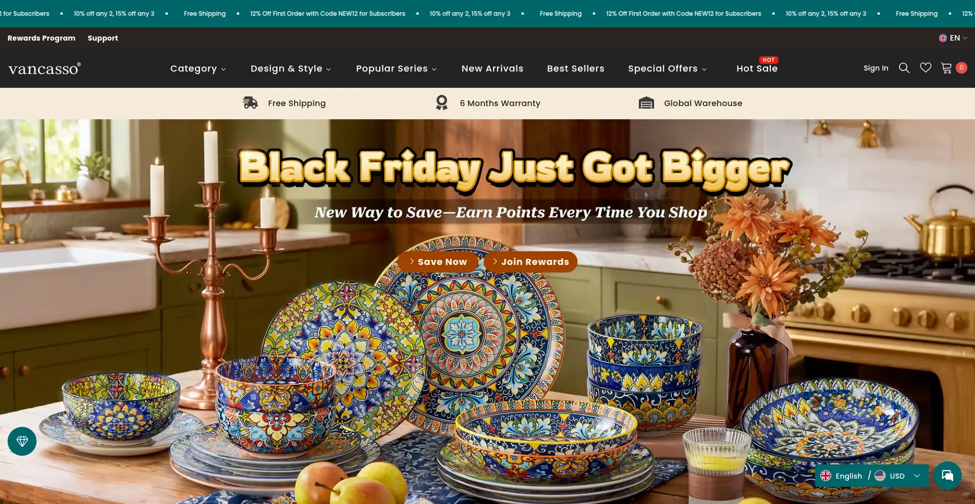 网站 vancassotableware.com 使用免费电子商务平台解决方案,这可能表明成本意识运营,但也可能暗示与企业级解决方案相比在安全功能、客户支持或高级功能方面的限制。