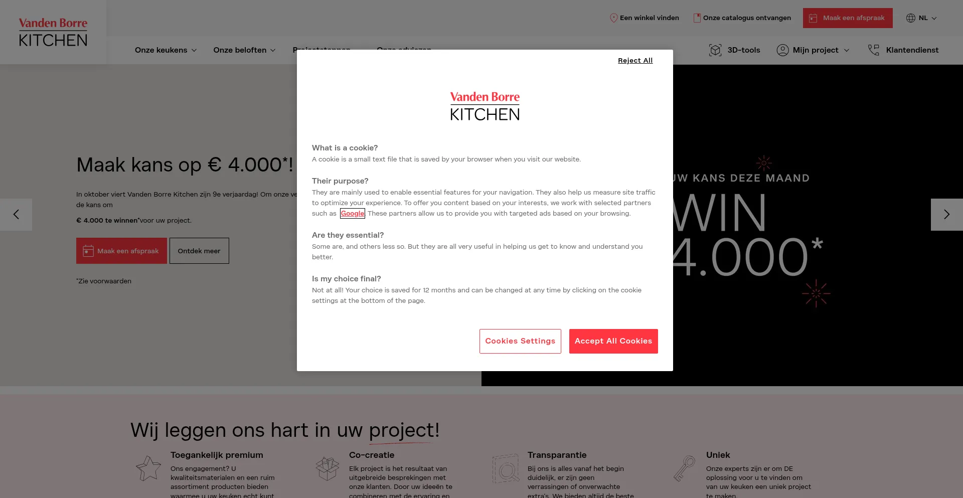 该网站实现符合GDPR或CCPA等隐私法规的cookie同意机制。这表明 vandenborrekitchen.be 遵守数据保护标准并为用户提供对个人数据收集实践的控制。