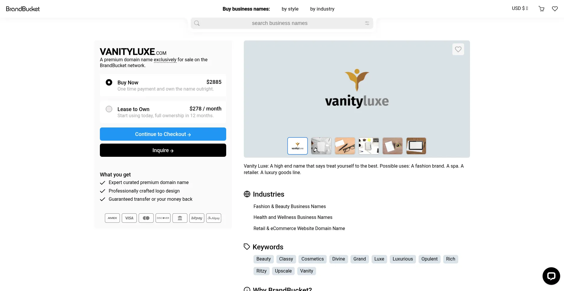 Buy the domain name VanityLuxe.com and launch your business with a premium domain and a high quality logo.