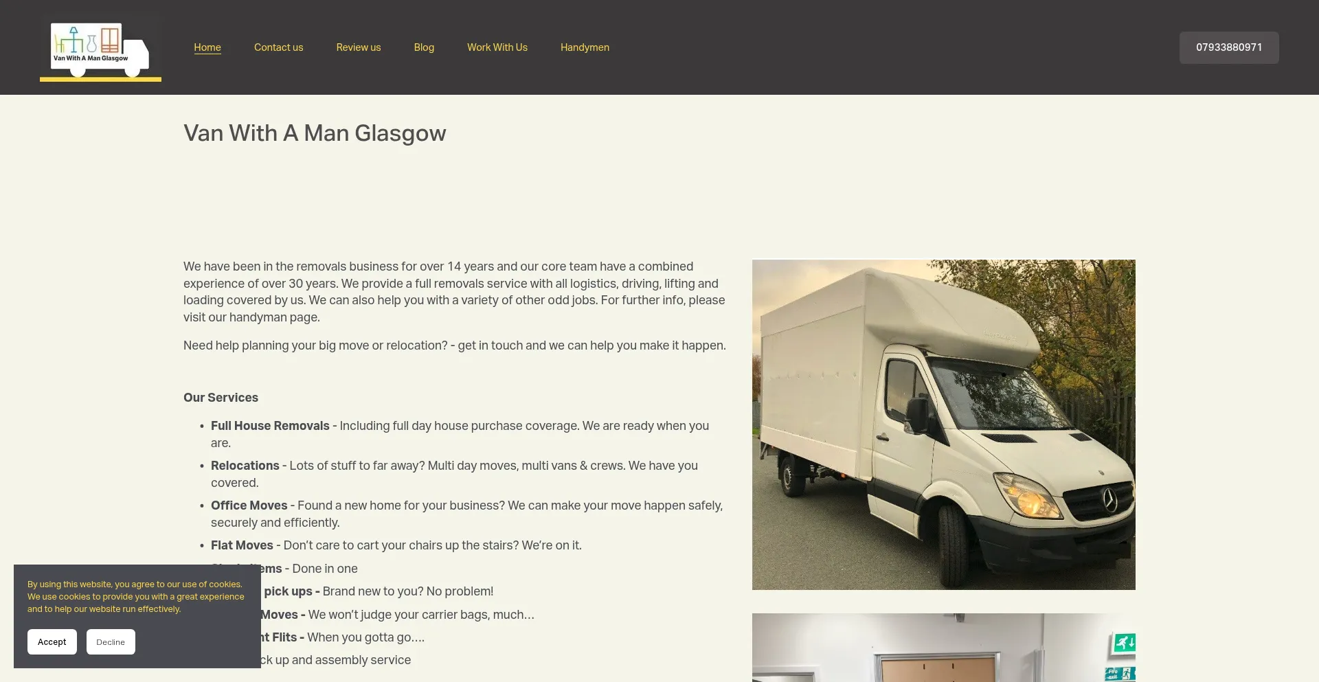 该网站实现符合GDPR或CCPA等隐私法规的cookie同意机制。这表明 vanwithamanglasgow.com 遵守数据保护标准并为用户提供对个人数据收集实践的控制。