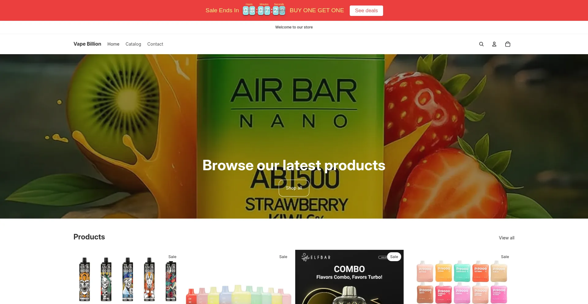 网站 vapebillion.myshopify.com 使用免费电子商务平台解决方案,这可能表明成本意识运营,但也可能暗示与企业级解决方案相比在安全功能、客户支持或高级功能方面的限制。